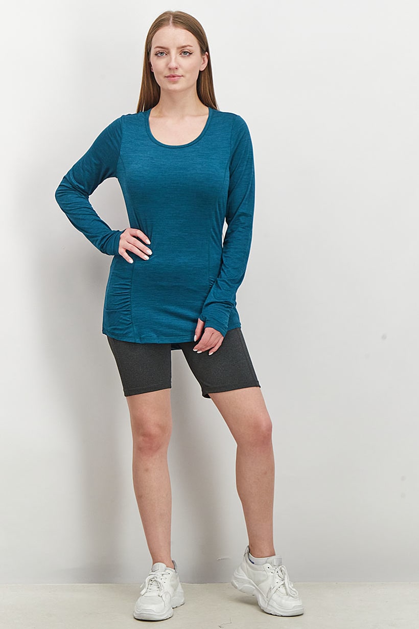 | sub_Categories | Women Clothing, Tops & Tees, women round neckline long sleeve plain top teal blue |