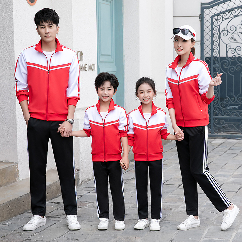 | nameOriginal | Team uniform class uniform school uniform parent-child suit couple wear stand collar three bars outdoor leisure sports suit printable embroidery |
