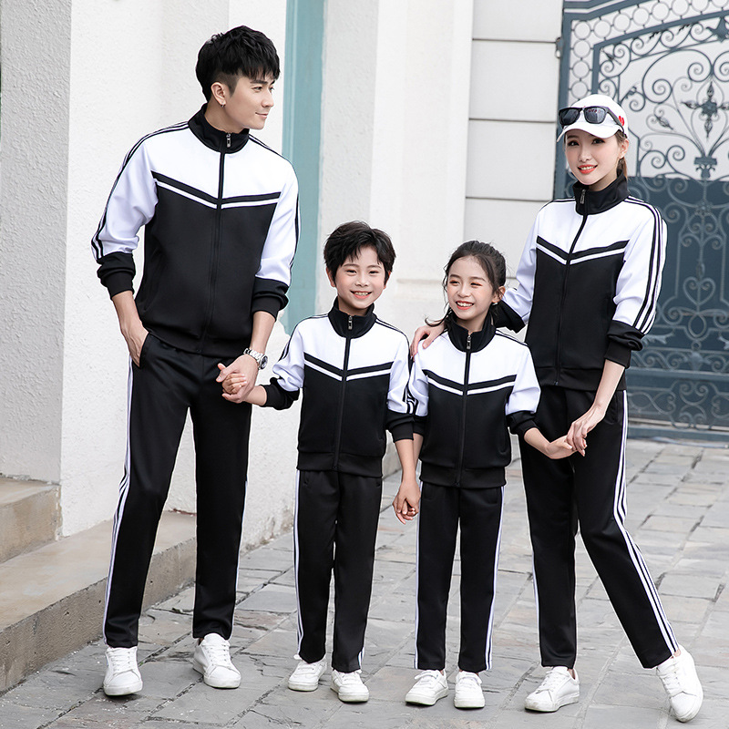 | nameOriginal | Team uniform class uniform school uniform parent-child suit couple wear stand collar three bars outdoor leisure sports suit printable embroidery |