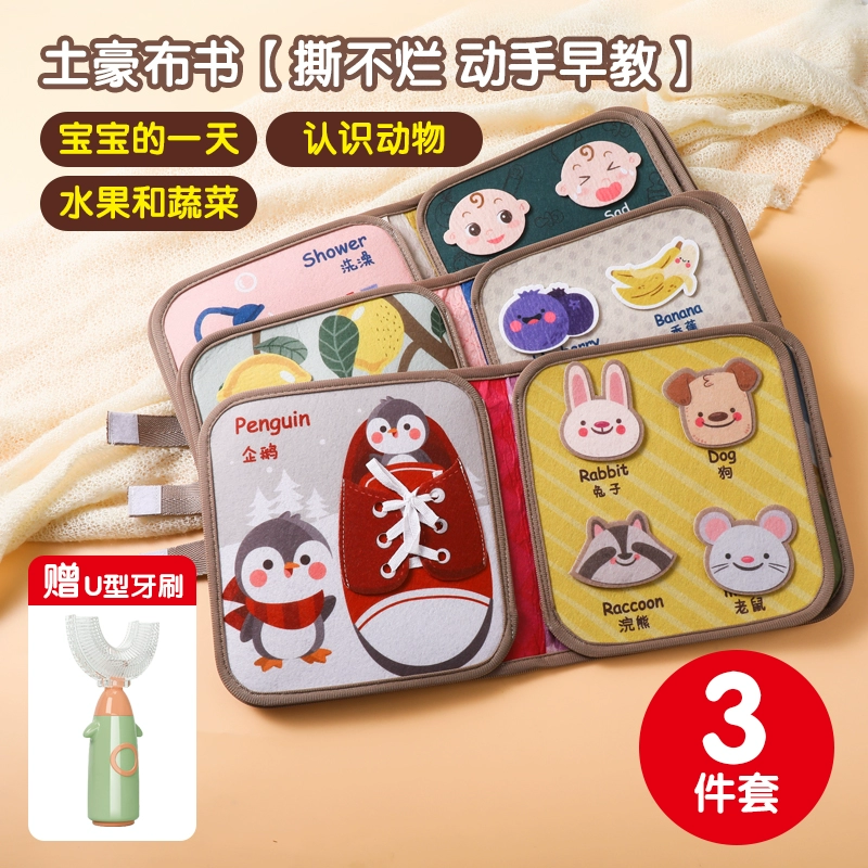 | nameOriginal | Tear-and-tear book baby can chew baby early education cloth book hand-tearable sticky book toy 0-1 year old quiet girl |