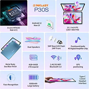The TECLAST Android 12 Tablet 10 inch also comes equipped with advanced features such as Face Recognition, Dual Cameras, BT5.0, GPS, and Google GMS Certification. The Face Recognition feature allows you to unlock your tablet with just a glance, while the Dual Cameras (front and back) enable you to capture stunning photos and videos.