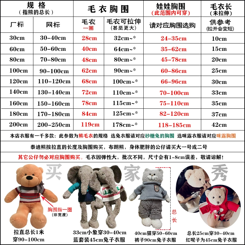 Teddy bear big bear bear sweater doll doll plush toy Barcelona bear clothes pants scarf