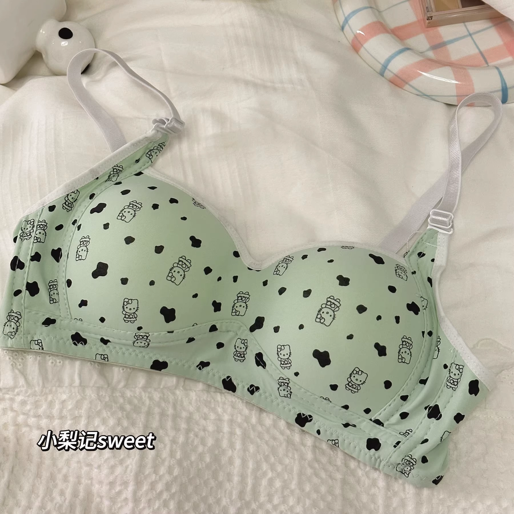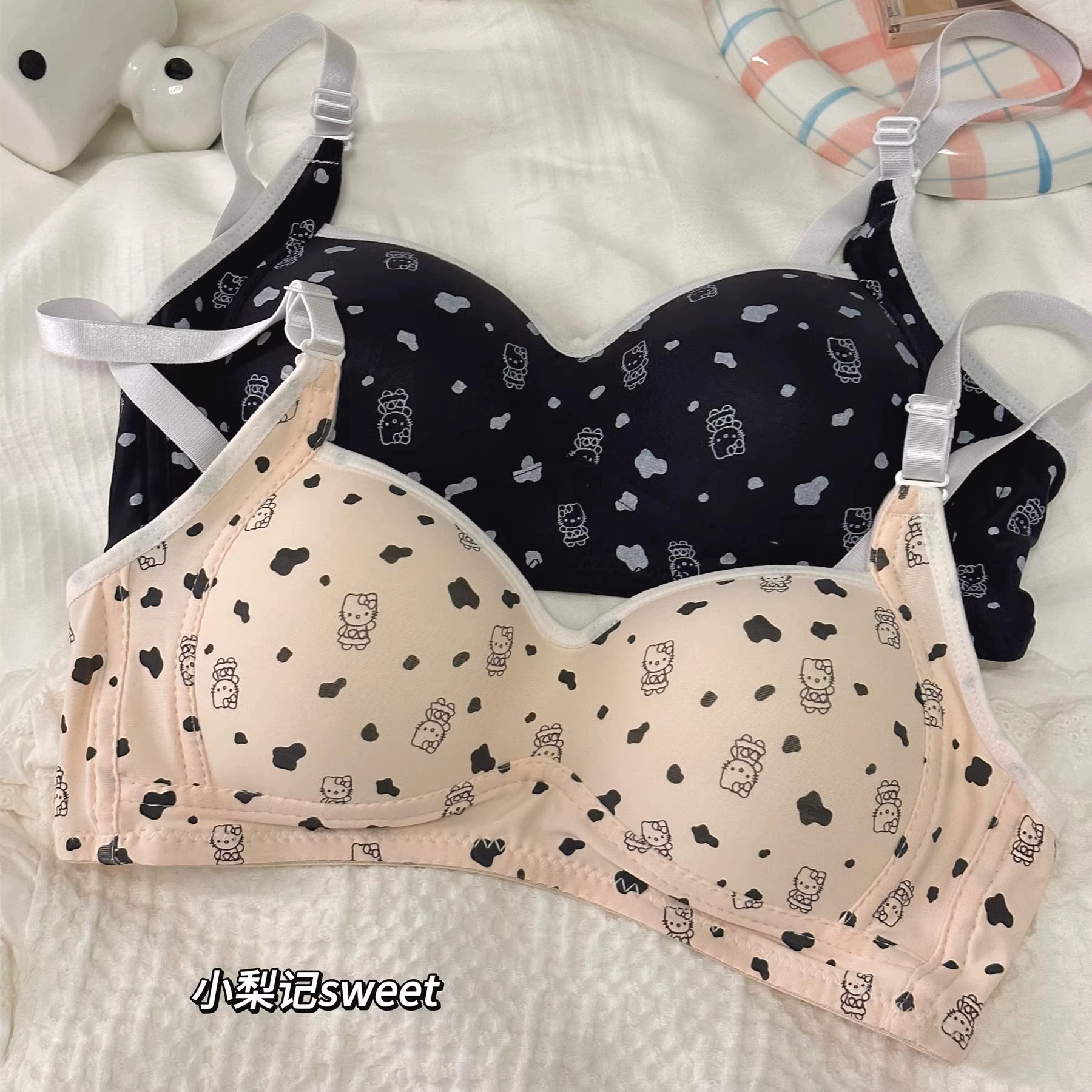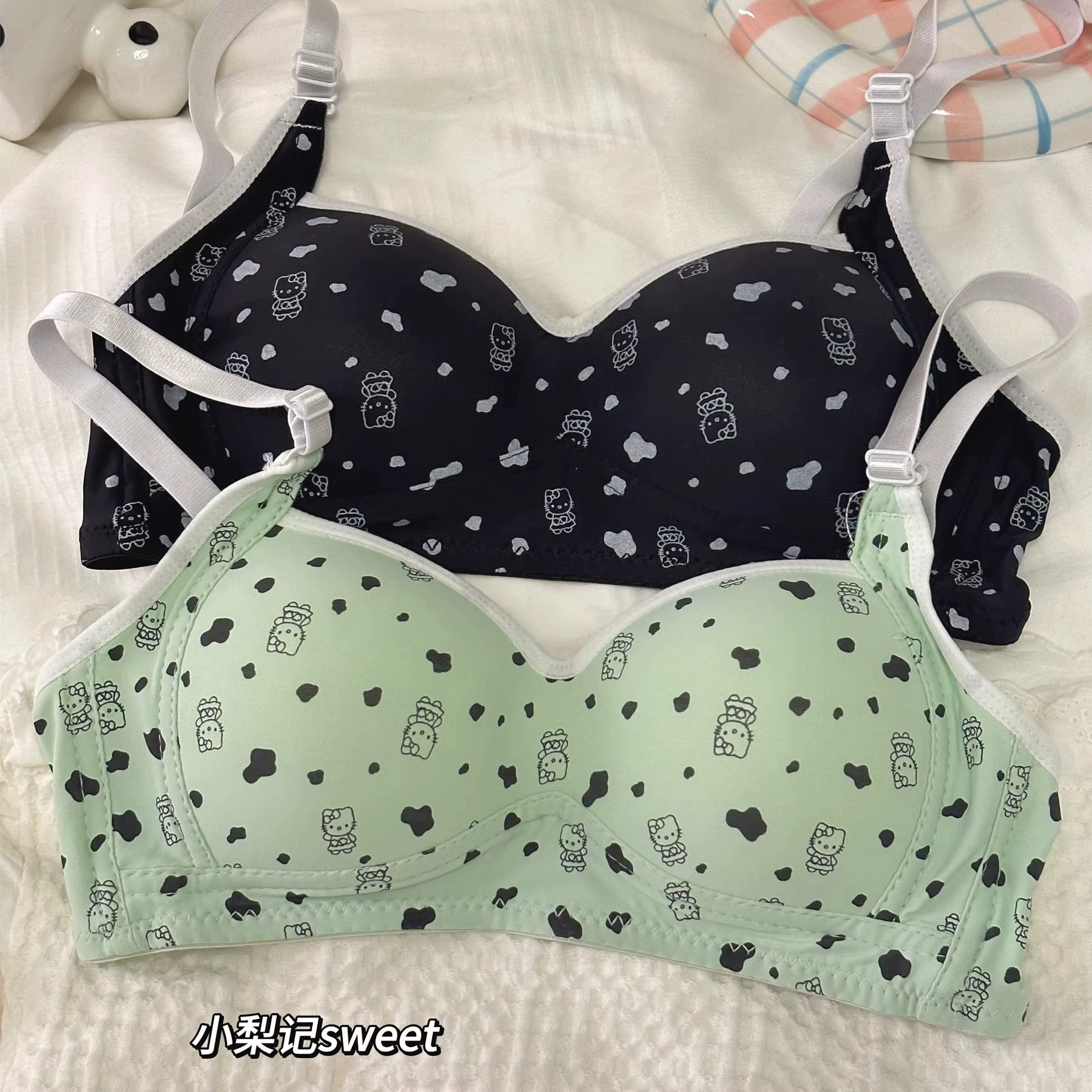 Teen girl student underwear female push-up small breast anti-sagging thin summer high school student cute cat comfortable bra