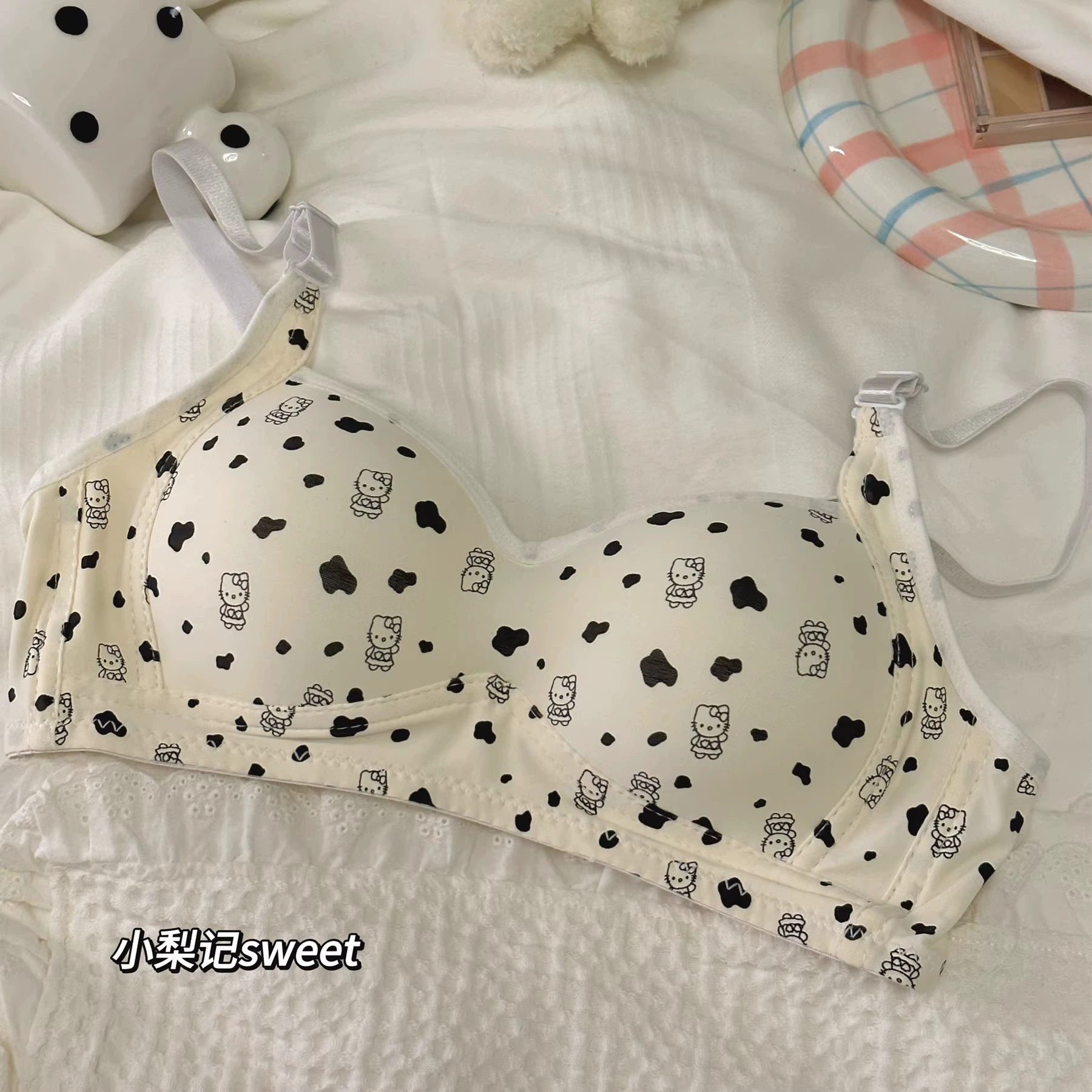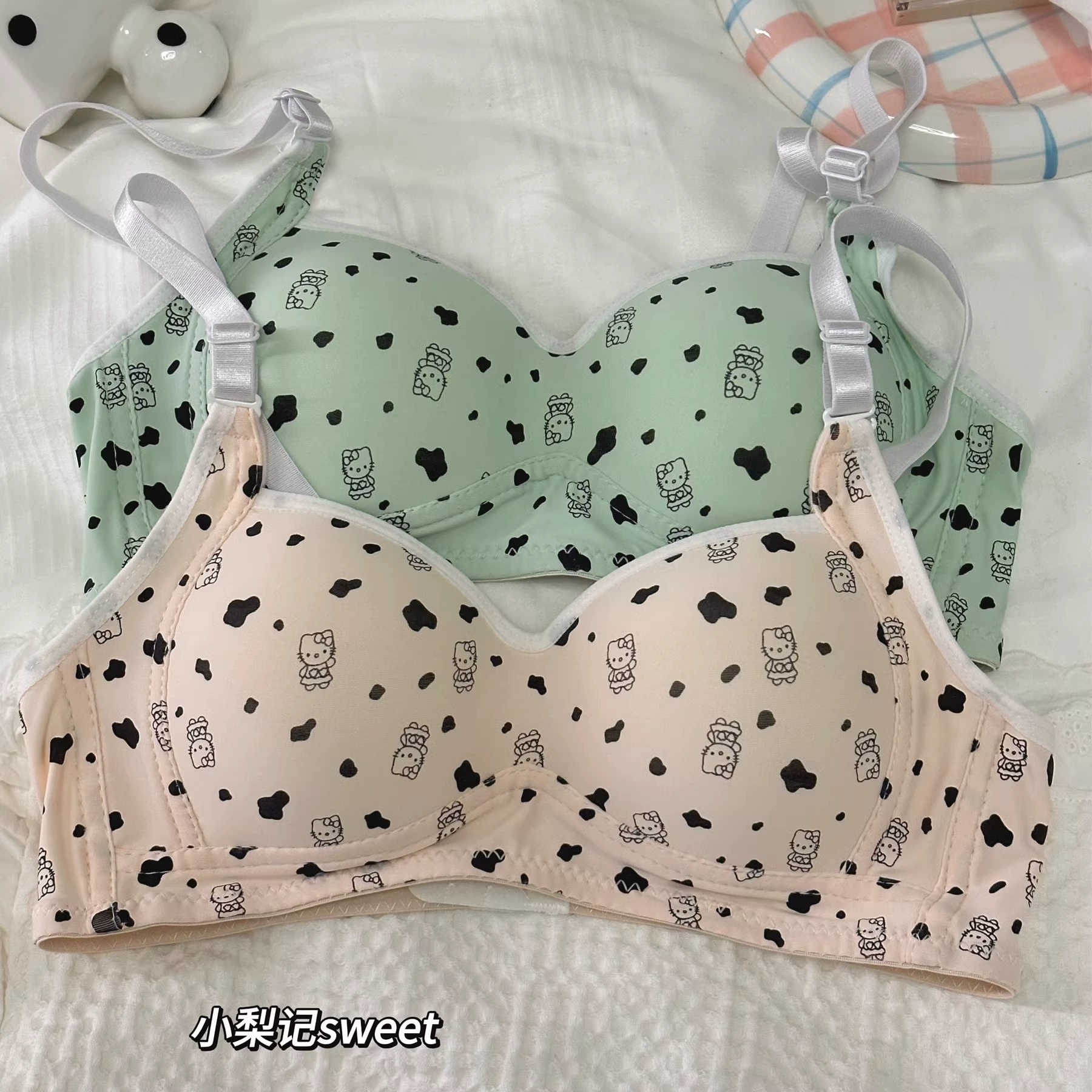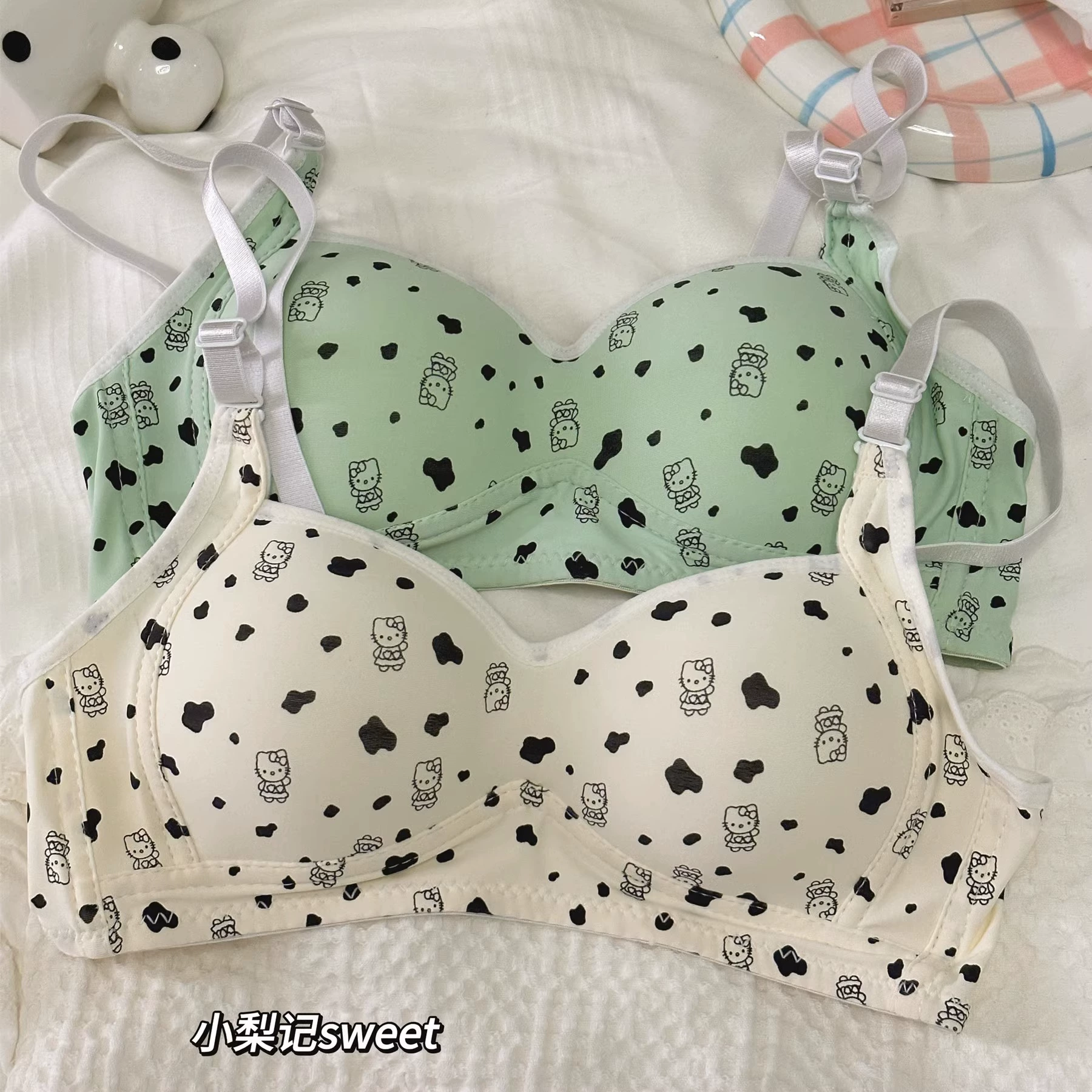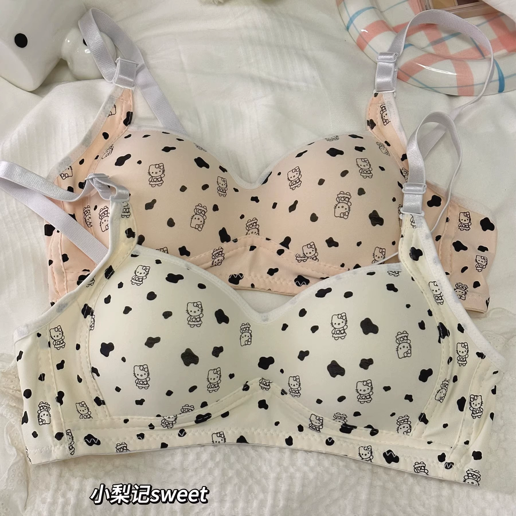 Teen girl student underwear female push-up small breast anti-sagging thin summer high school student cute cat comfortable bra