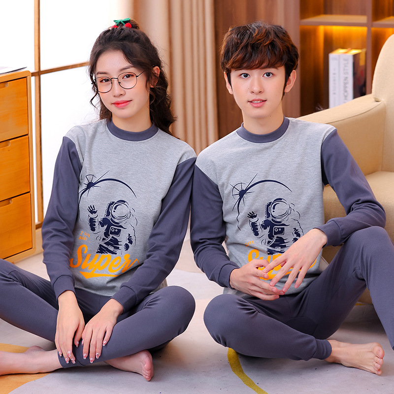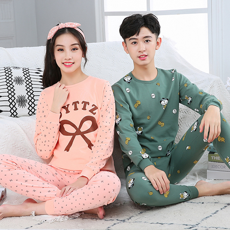 Teenager Cotton Underwear Set Boy's Autumn Clothes and Pants Junior High School Student Female Home Clothes Middle Collar Pajamas
