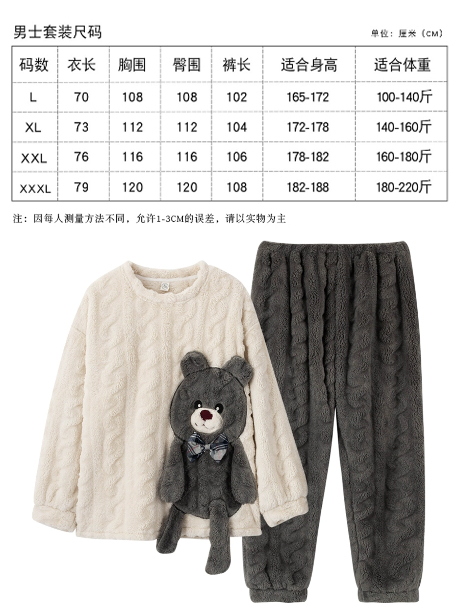 | nameOriginal | Teenager men's coral velvet pajamas autumn and winter thickened plus velvet 2023 new bear flannel home clothes |