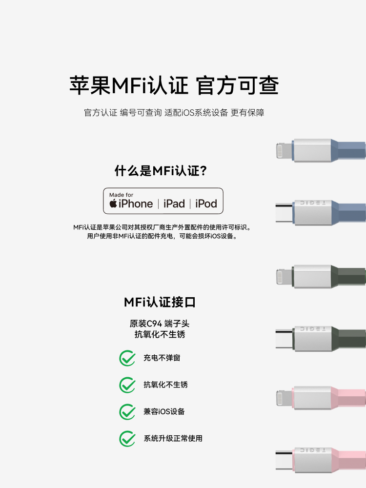 TEGIC Fast Charging PD Data Cable Magnetic Skin Friendly Silicone Suitable for Apple iPhone16/15/14Pro Max Dual C Port Type-C to Lightning Charging Cable 60W