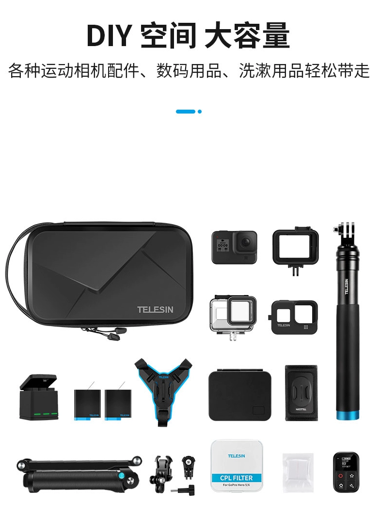 | nameOriginal | TELESIN suitable for gopro13/12/11/10/9/8/7 storage bag DJI action3 protective bag sports camera protective box waterproof anti-fall anti-pressure protective bag gopro accessories |