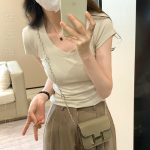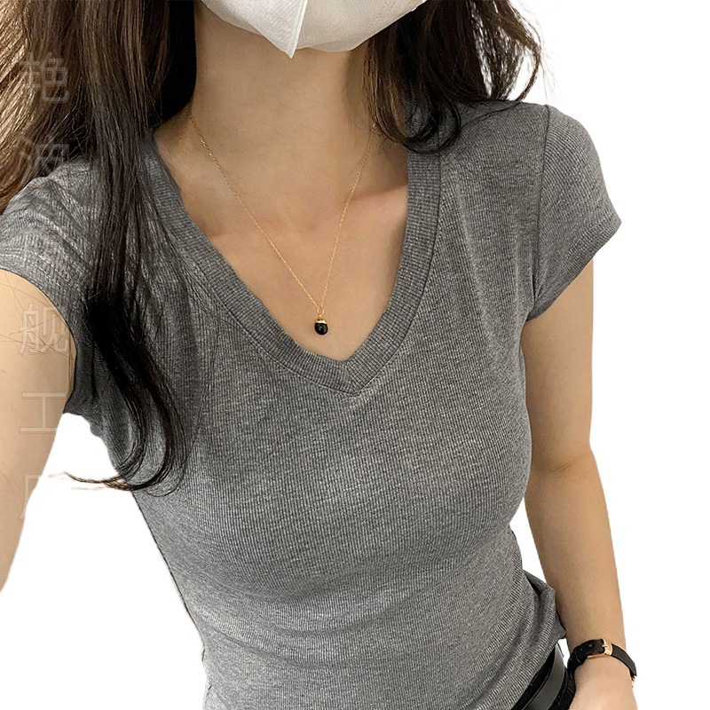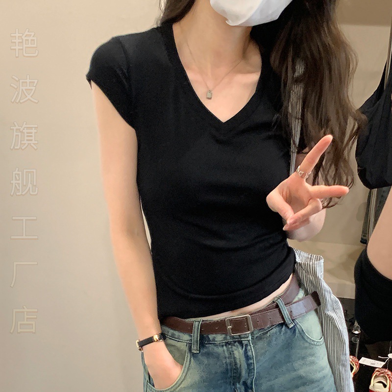 | nameOriginal | Temperament 2023 Summer New Half-sleeve Threaded V-neck Elastic T-shirt Women's Short-sleeve All-match Shoulder Solid Color Taste |