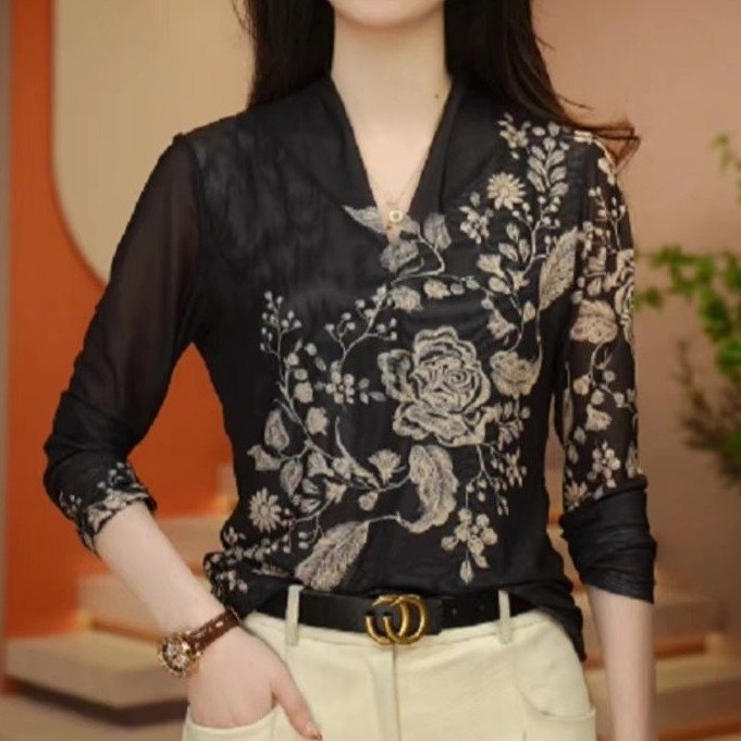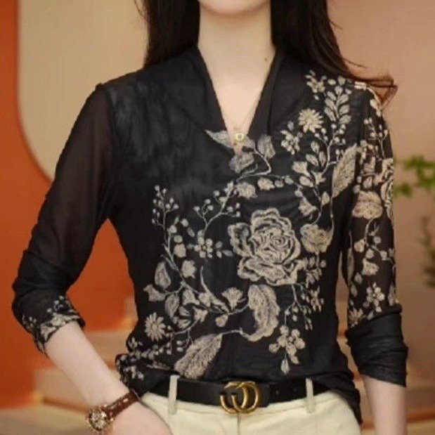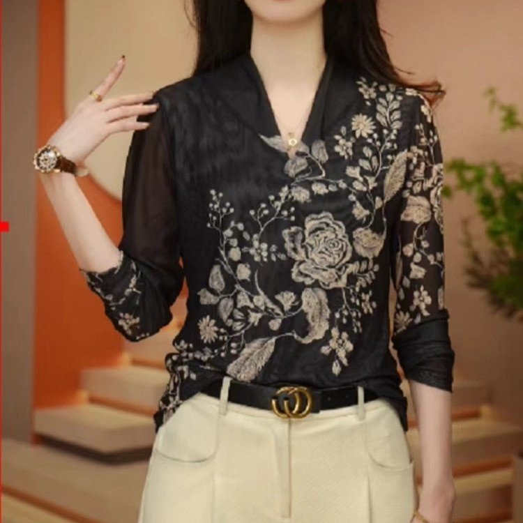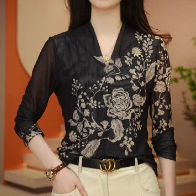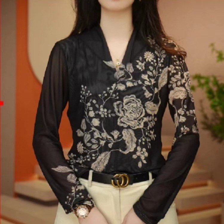 | nameOriginal | Temperament Age-reducing Skin Mesh Base Shirt Spring and Autumn Explosions Women's Long-sleeved T-shirt High-grade All-match Top Small Shirt |