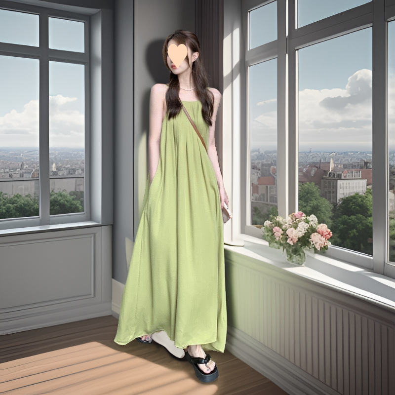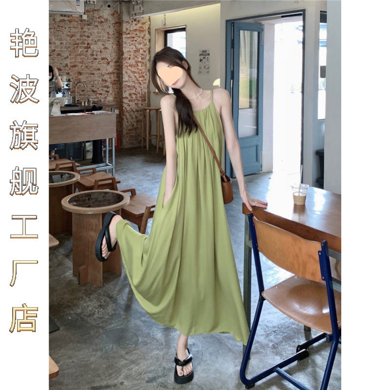 | nameOriginal | Temperament avocado green Sling dress Female Summer Gentle South Dali Mint Mambo Seaside Taste |