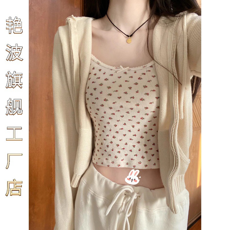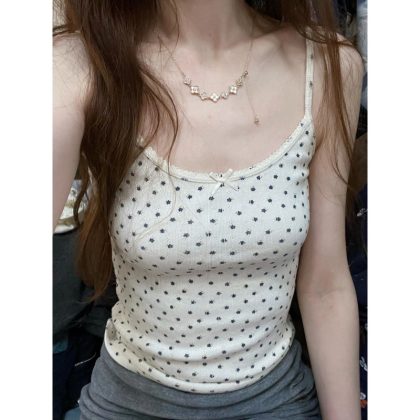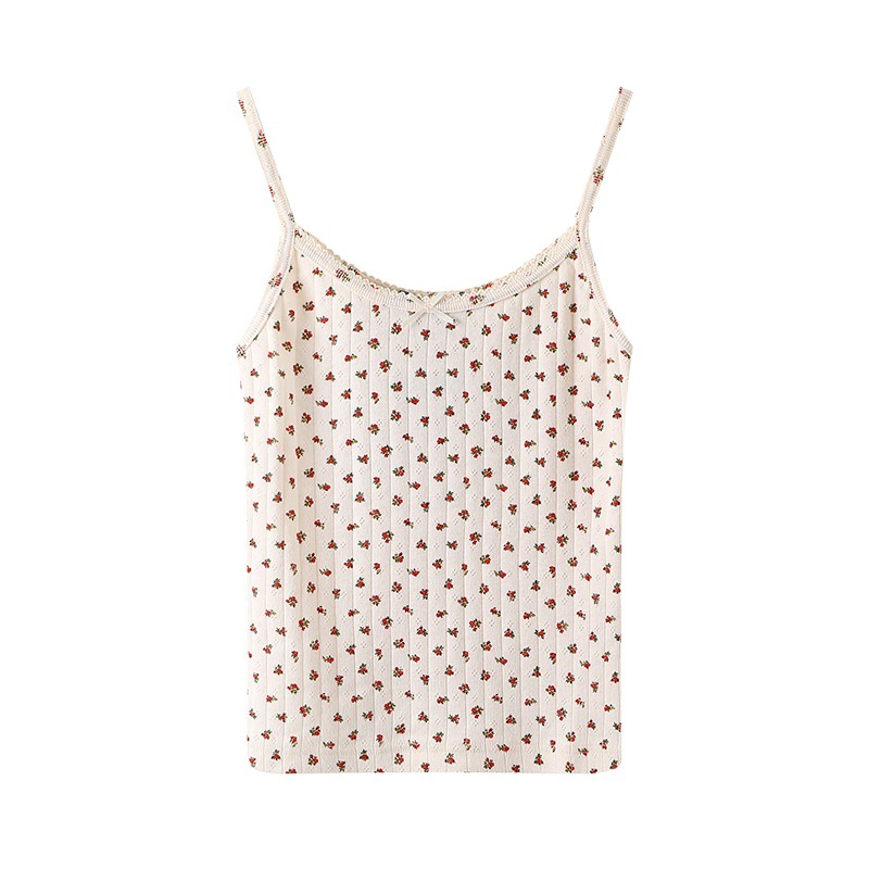 | nameOriginal | Temperament Brandy Red Floral Small Sling Women's Spring Lace Bow Bm Vest Short Taste Top |