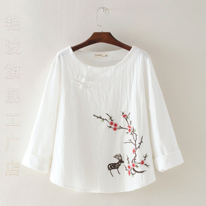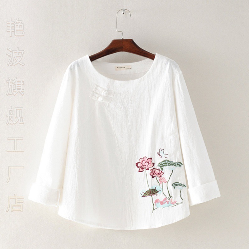 | nameOriginal | Temperament Chinese Style Lotus Embroidered Cotton and Linen Top Women's Loose Spring Long-sleeved T-shirt Spring Asian Taste |