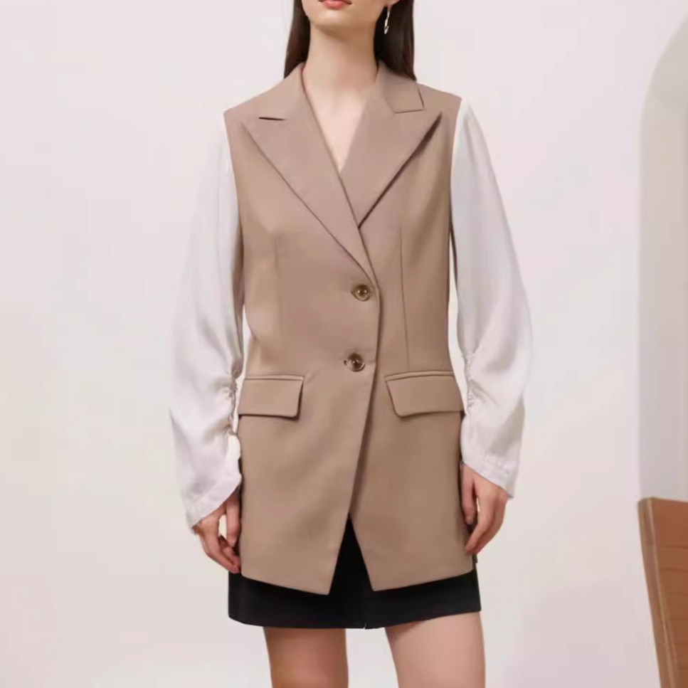Temperament Commuter Design Sense Contrast Color Stitching Small Suit Women’s Autumn New Business Wear Niche Drawstring All-match Jacket
