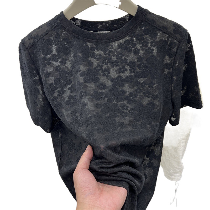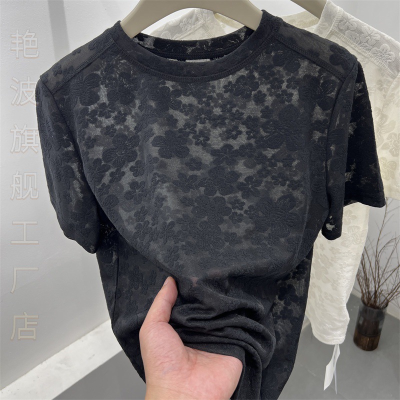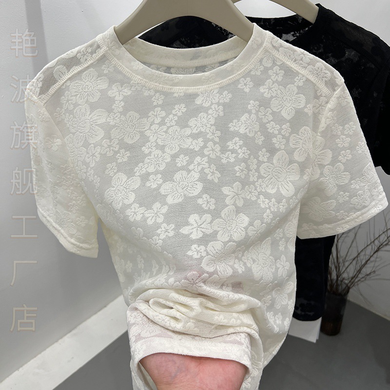 | nameOriginal | Temperament Design Sense Fresh Style Lace Jacquard Short-sleeved T-shirt Women's 2024 Summer New Style Taste T-shirt |