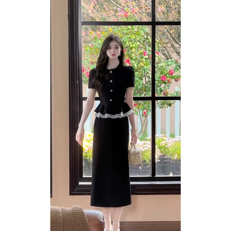 | nameOriginal | Temperament fake two-piece high-end celebrity dress for women 2024 summer new slim fashion high-level long skirt |