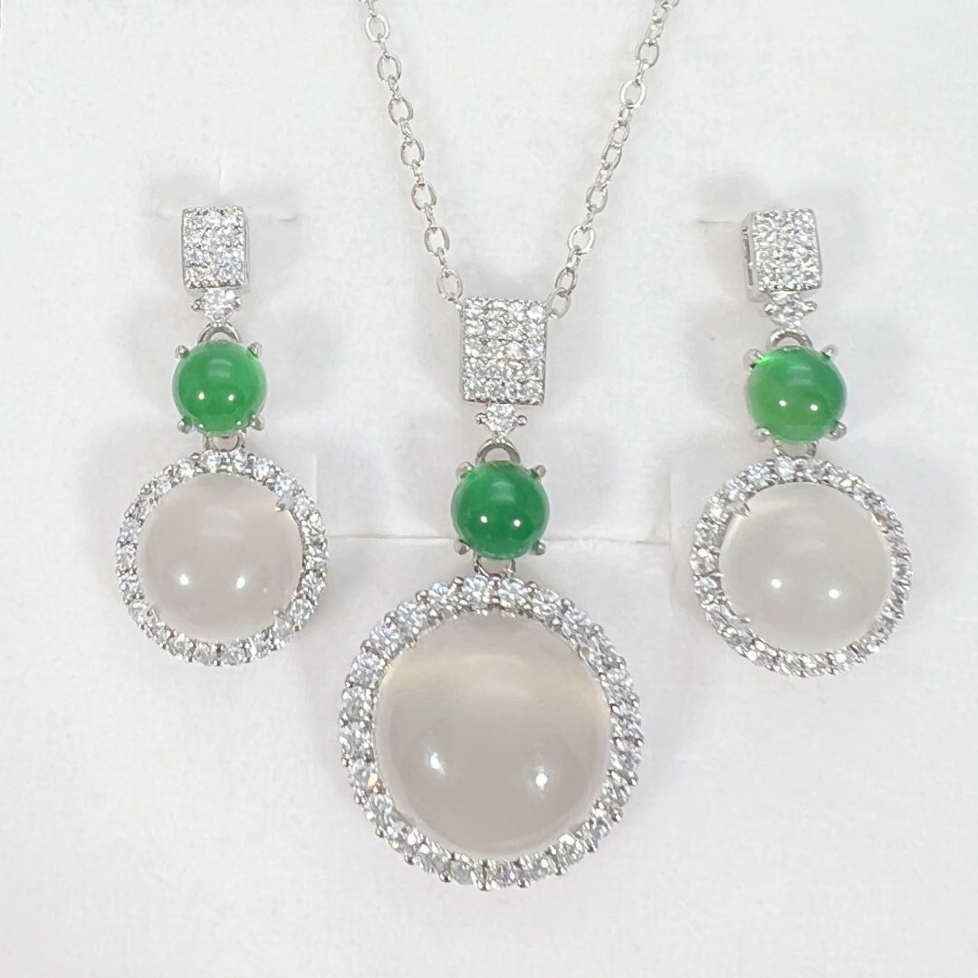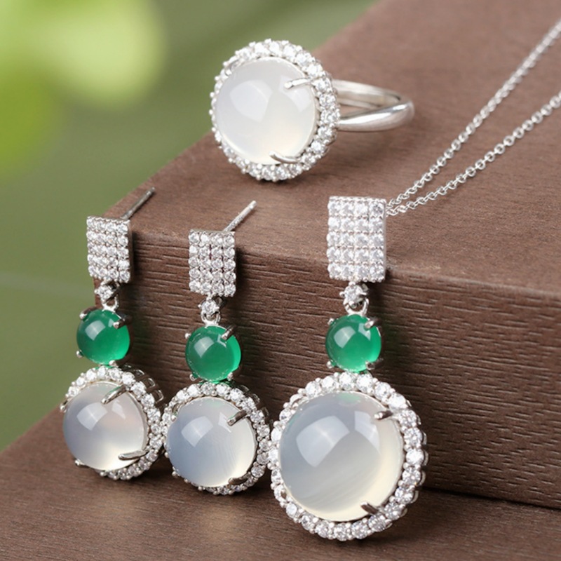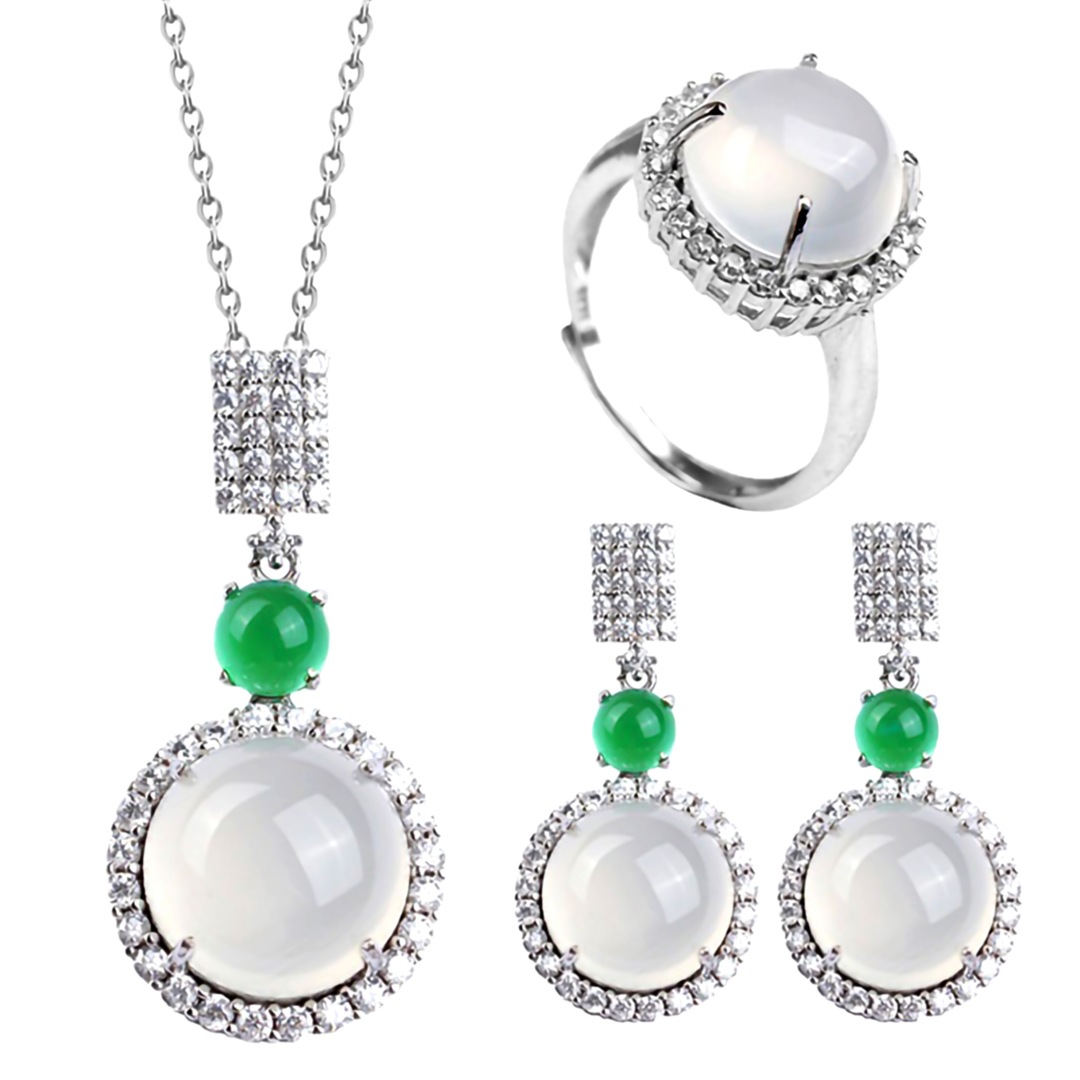 | nameOriginal | Temperament Fashion Natural Chalcedony Earring Ring Pendant Necklace Jewelry Set High Ice Complete Jade Three-piece Set |