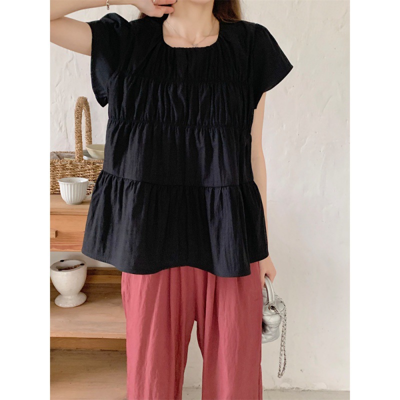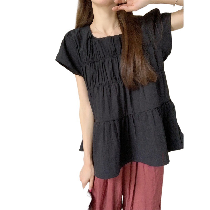 | nameOriginal | Temperament Gentle Style Korean Style Short Shirt 2024 Summer Casual Slimming Round Neck Short-sleeved plus size Shirt Top for Women |