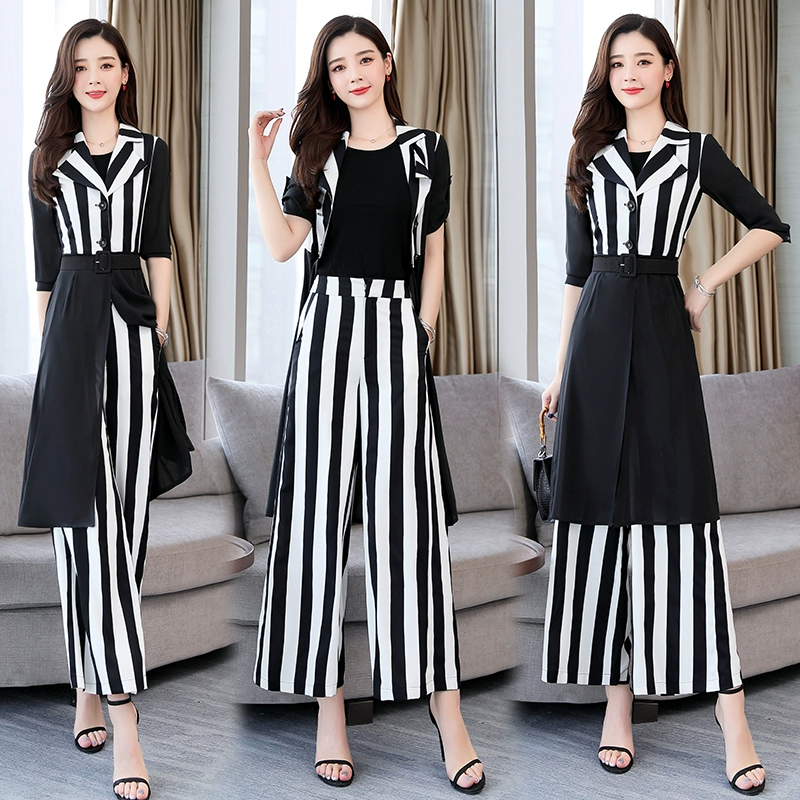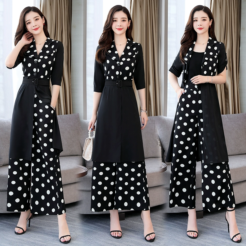 Temperament goddess Fan Xian thin wide -leg pants professional set