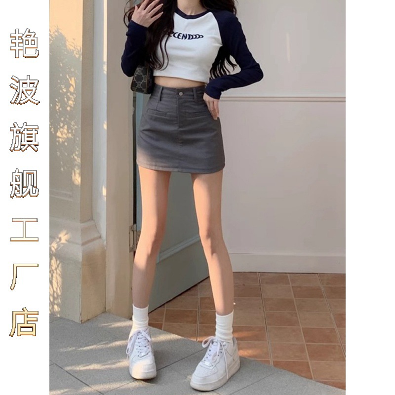 | nameOriginal | Temperament Grey High Waist A- Line Suit Skirt Women's Summer New College Style Spice Girl Covering Skinny and Taste |