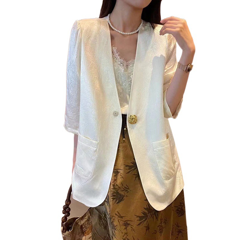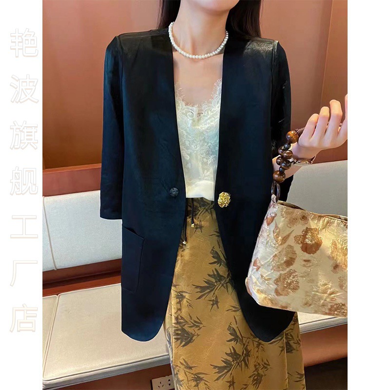 | nameOriginal | Temperament Half Sleeve Acetic Acid Satin Suit Jacket Women's 2024 New European Thin Casual High-end Sense Taste |