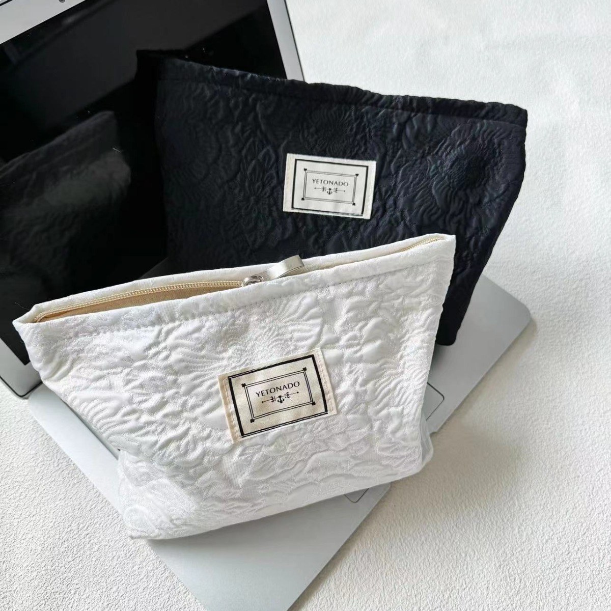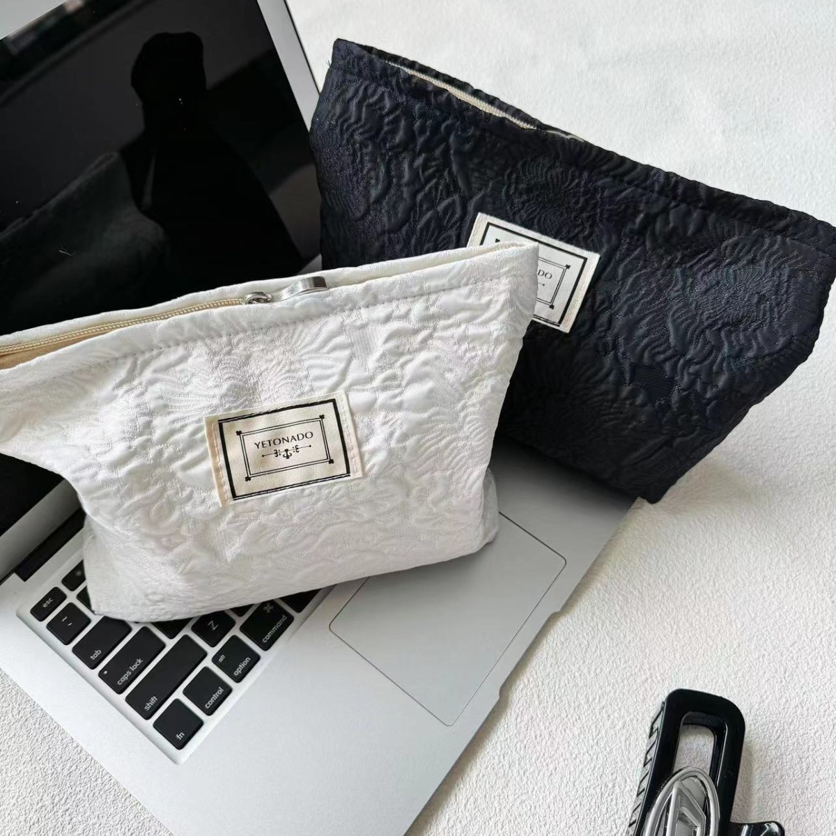 Temperament Hepburn Style Large Capacity Cosmetic Bag Stereo Printed Storage Bag Travel Wash Bag Skin Care Canvas