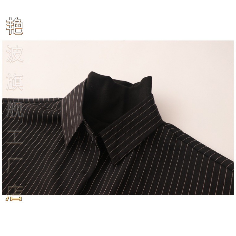 | nameOriginal | Temperament Hong Kong Style Retro High Collar Vertical Stripe Fake Two-piece Shirt 2024 Autumn and Winter New Casual Style Dark and Taste |