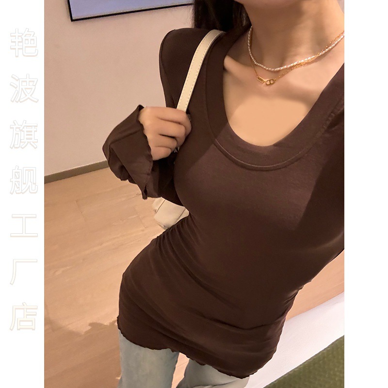 | nameOriginal | Temperament horn sleeve early spring long pleated sexy bottoming shirt long sleeve T-shirt women's decoration tasteful |