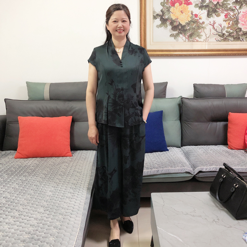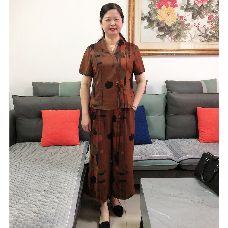 | nameOriginal | Temperament middle-aged mother summer suit 2024 new 50-year-old women's short sleeve jacket foreign style two-piece suit |