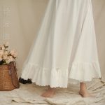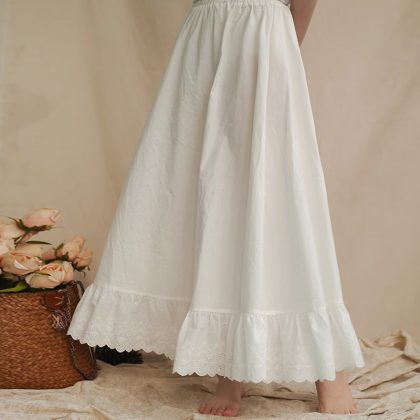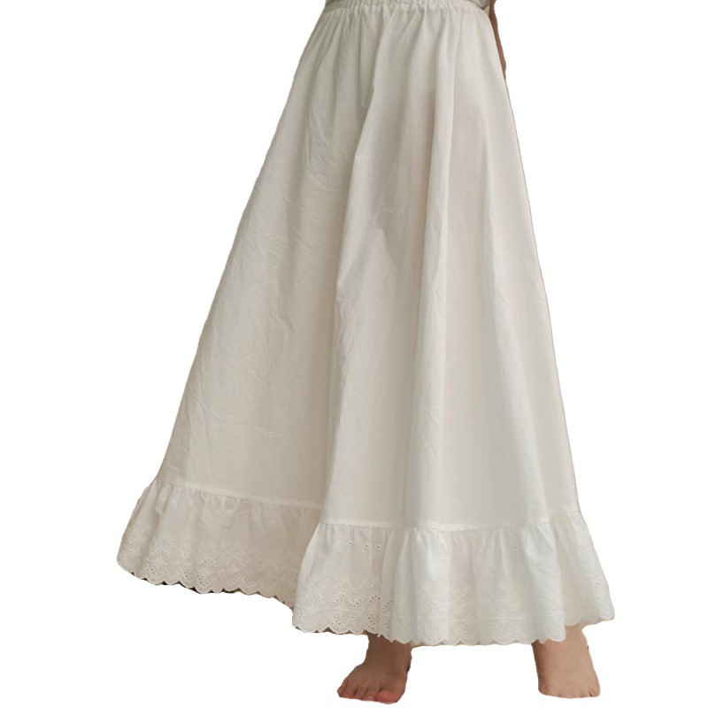 Temperament Mori Style Women’s Pure Cotton Bust Skirt Lined with Embroidered Lace Artistic Anti-Static Long Skirt with Taste