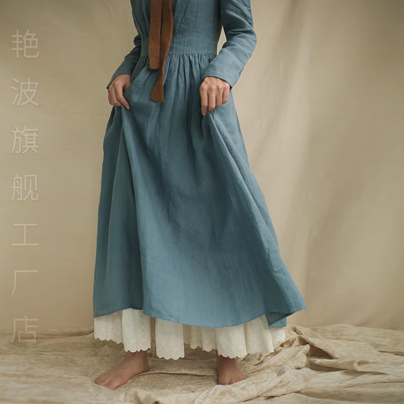 Temperament Mori Style Women's Pure Cotton Bust Skirt Lined with Embroidered Lace Artistic Anti-Static Long Skirt with Taste