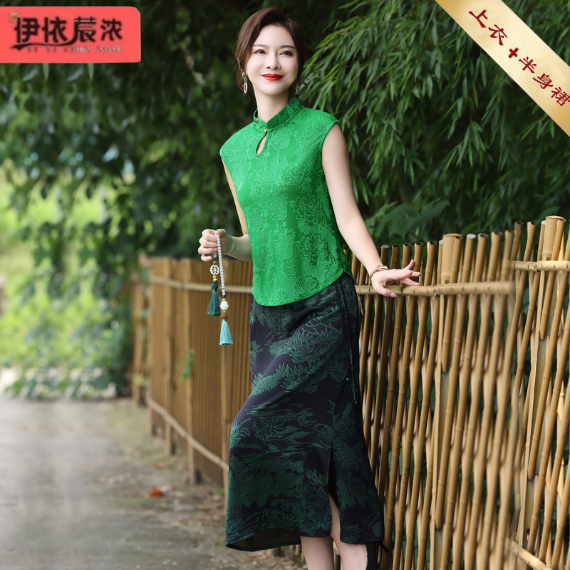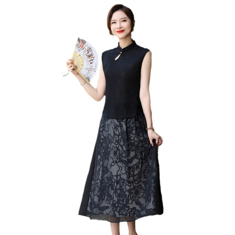 | nameOriginal | Temperament mother summer sleeveless T-shirt skirt suit 50 years old 60 middle-aged women cool thin short sleeve skirt |