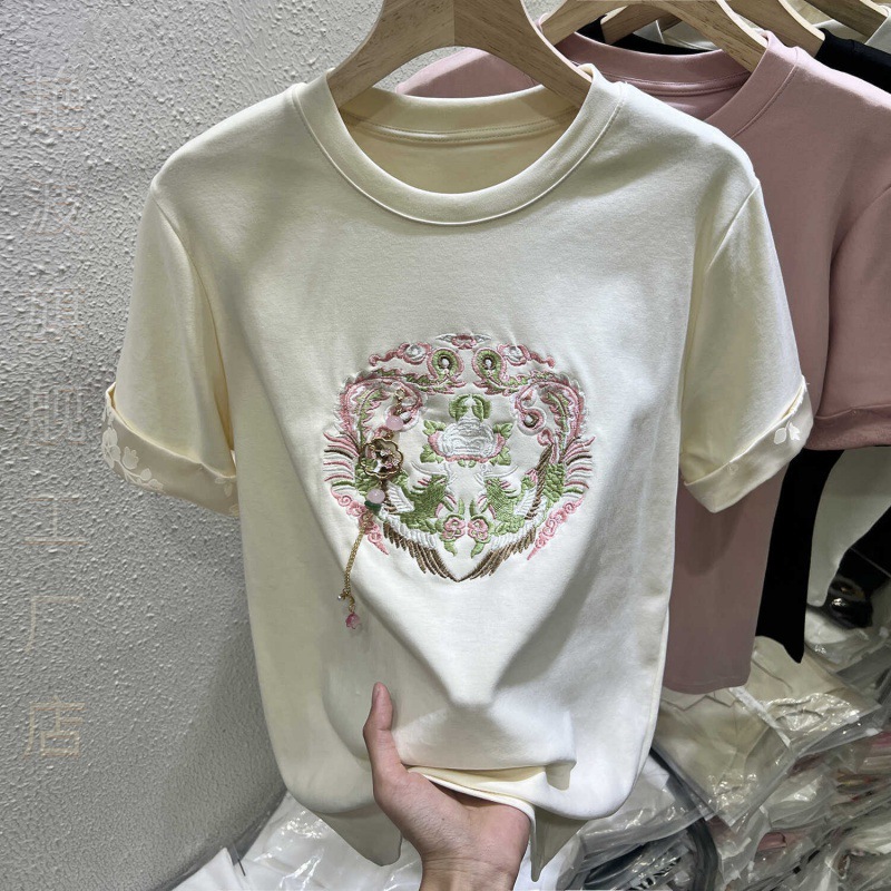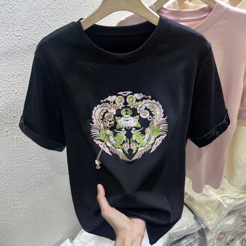 | nameOriginal | Temperament New Chinese Round Neck Guofeng Heavy Industry Embroidered Jacquard Contrast Short-sleeved T-shirt Women's 2024 Summer New Taste |