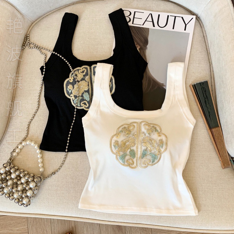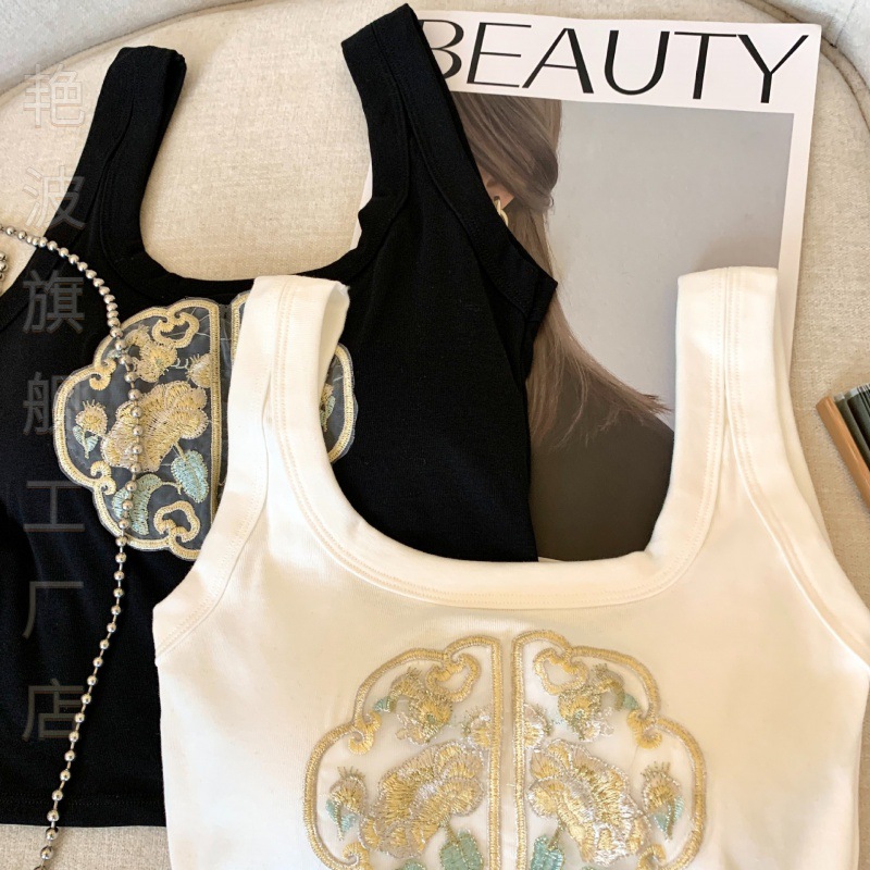 Temperament New Chinese Style National Style Small Sling Women's Outer Wear Summer Belt Chest Pad One-piece Inner Short Embroidered Back with Taste