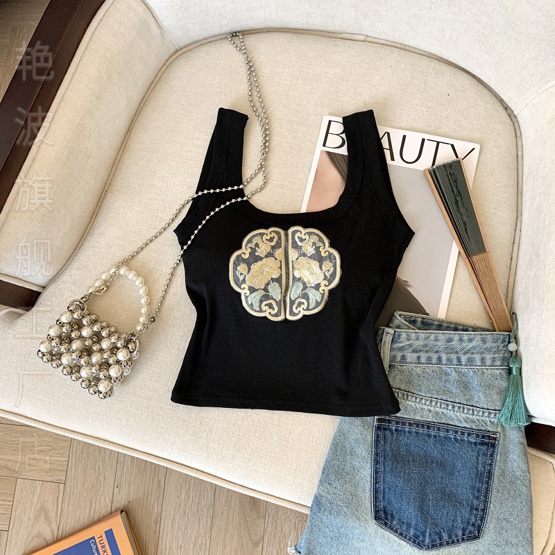Temperament New Chinese Style National Style Small Sling Women’s Outer Wear Summer Belt Chest Pad One-piece Inner Short Embroidered Back with Taste