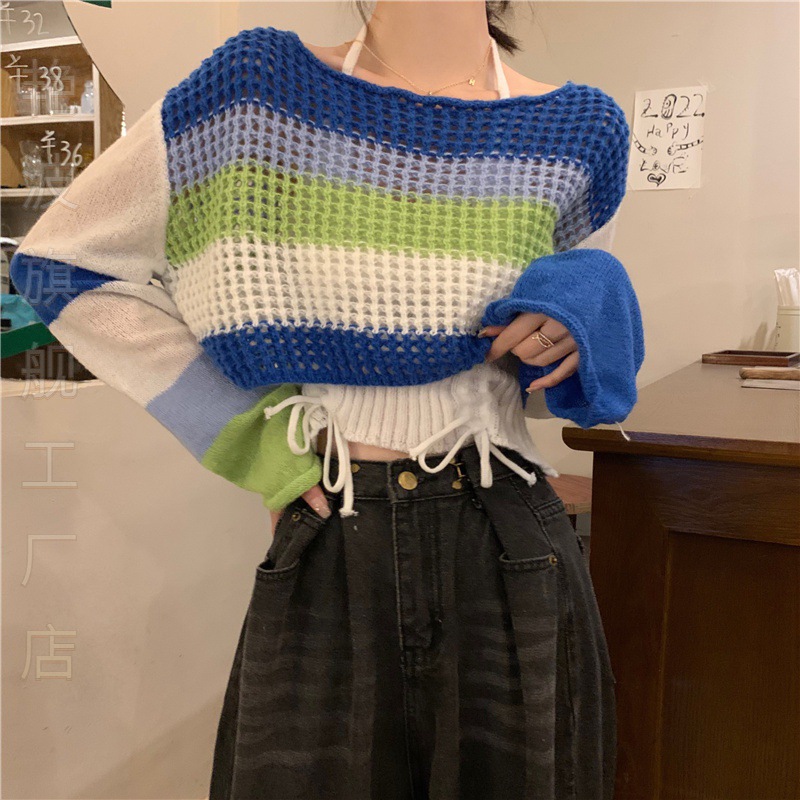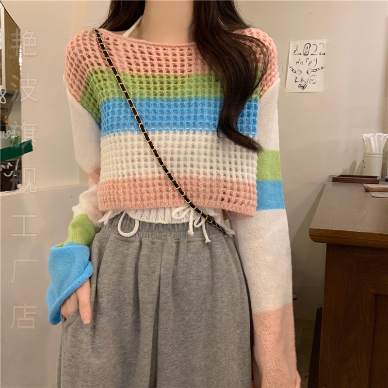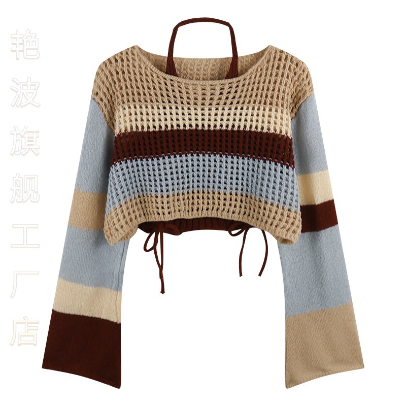 | nameOriginal | Temperament New Korean-style Early Autumn Hollow Long-sleeved Knitted Sweater Hanging Neck Camisole Women's Two-piece Design with Taste |