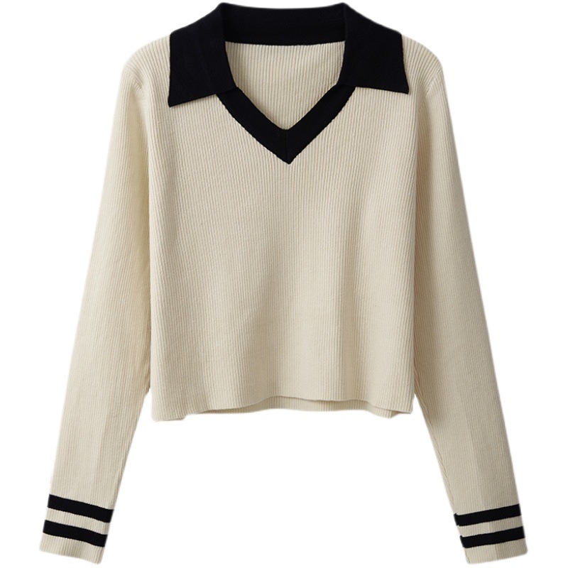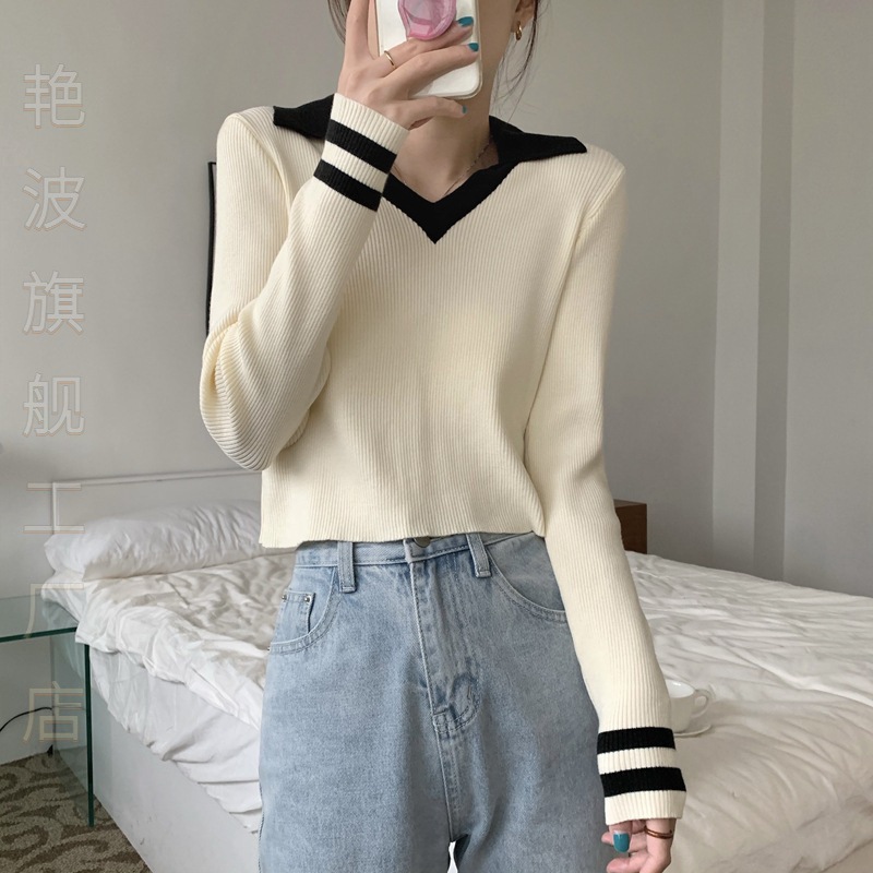 | nameOriginal | Temperament plus size Women's New Polo Collar Knitted Sweater Spring and Autumn New chubby girl plus size Slim Contrast Color Long Taste |