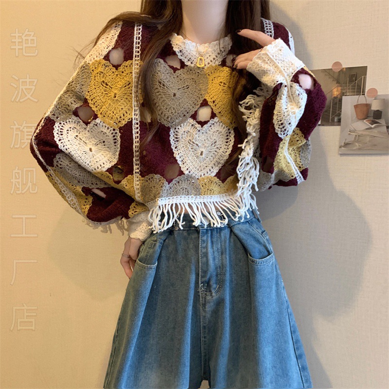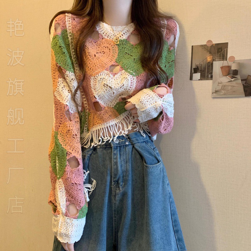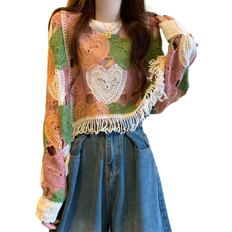 | nameOriginal | Temperament Short Bohemian Ethnic Tassel Sunscreen Hollow Knitted Blouse Women's Spring Wear Dopamine Taste |