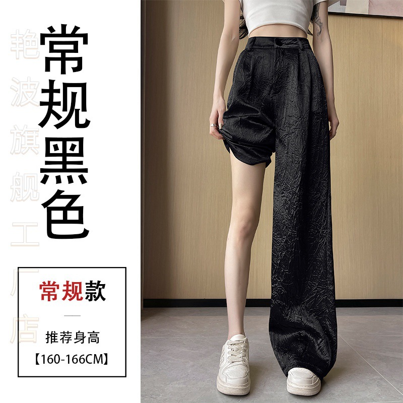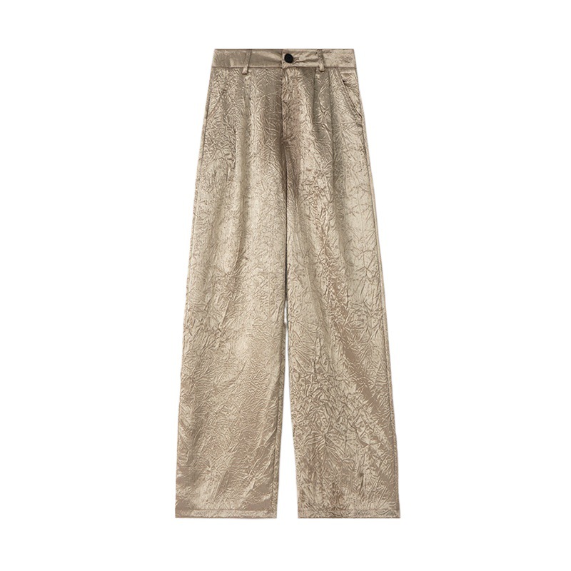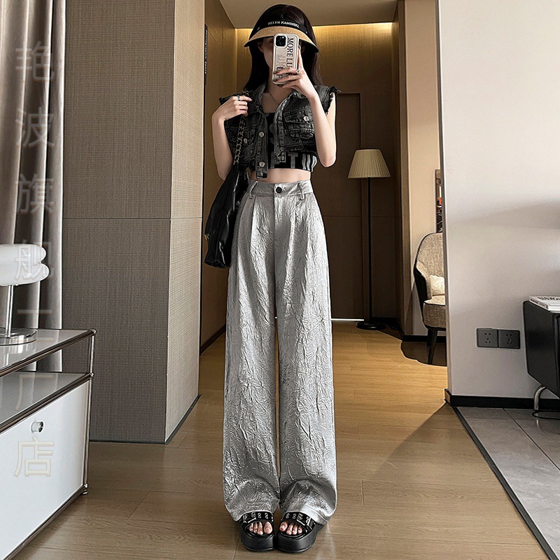 Temperament silver Narrow Wide Leg Pants Women’s Summer Thin High Waist Pleated Suit Pants High-grade Draped Straight Taste
