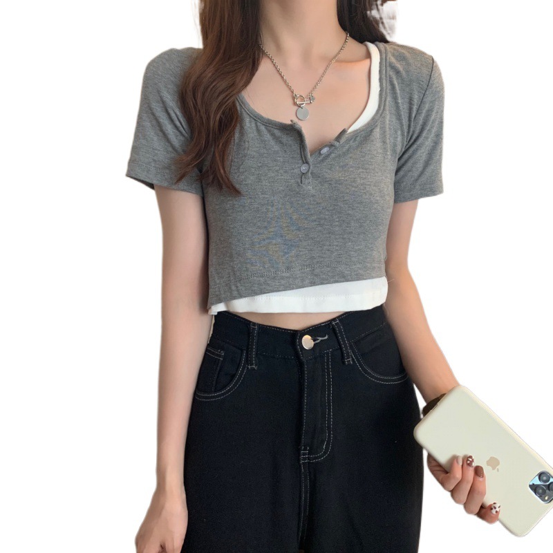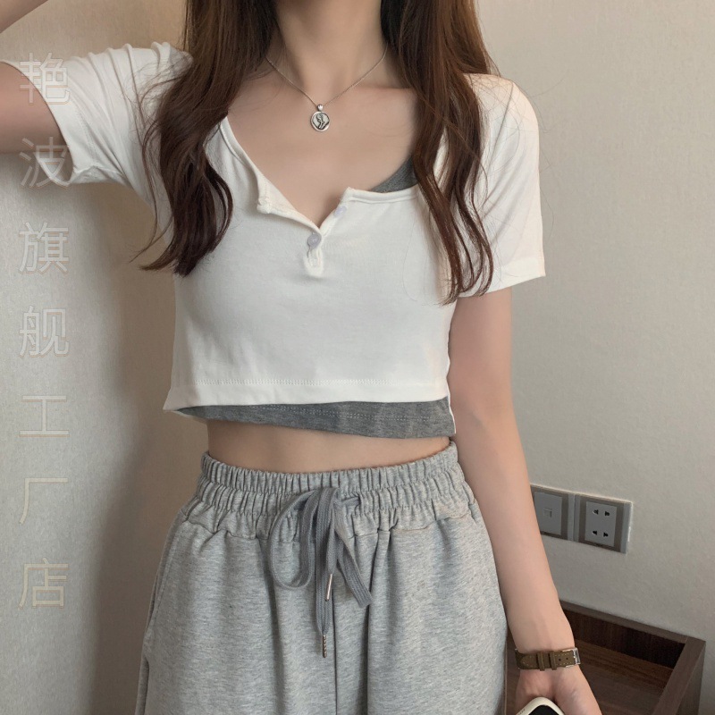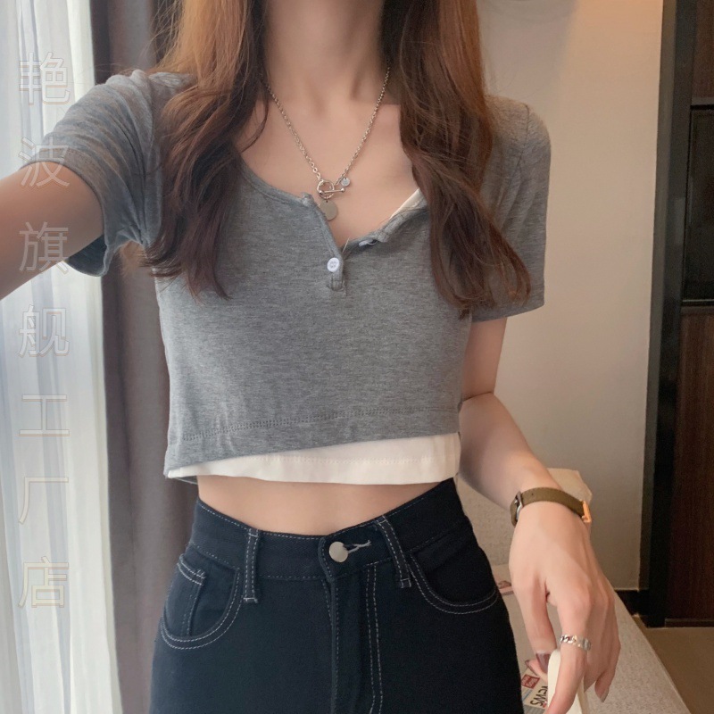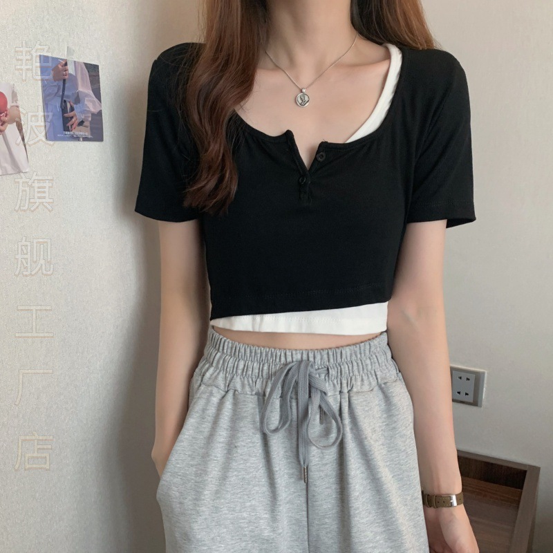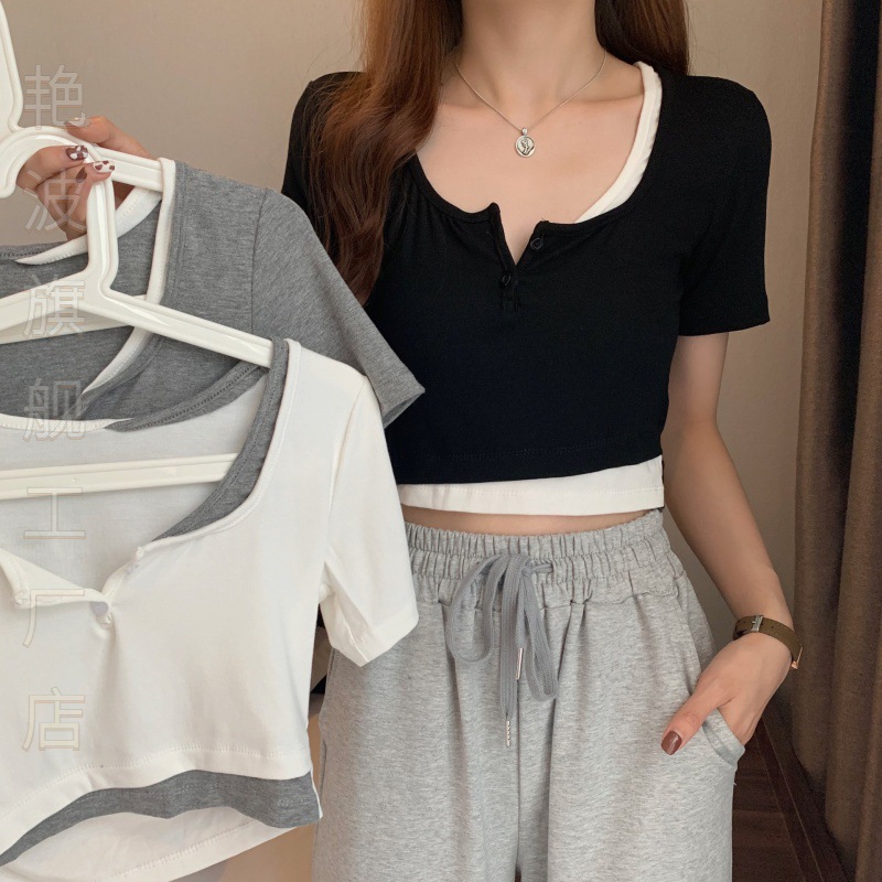 | nameOriginal | Temperament Spice Girl Fake Two-piece Short-sleeved T-shirt Women's Summer Short Sweet Spicy Style Jazz Dance Clothes Dance J Taste |