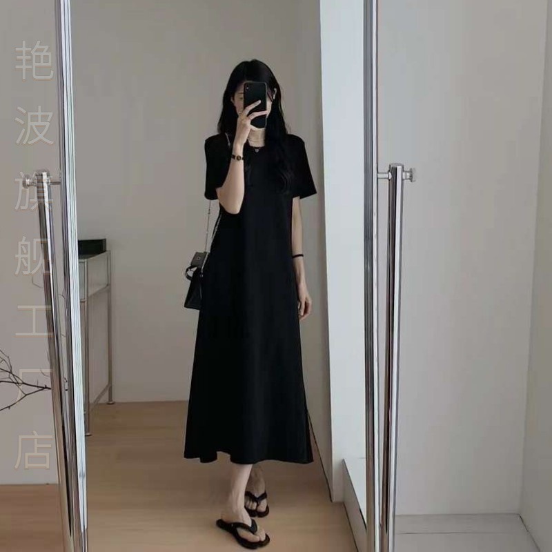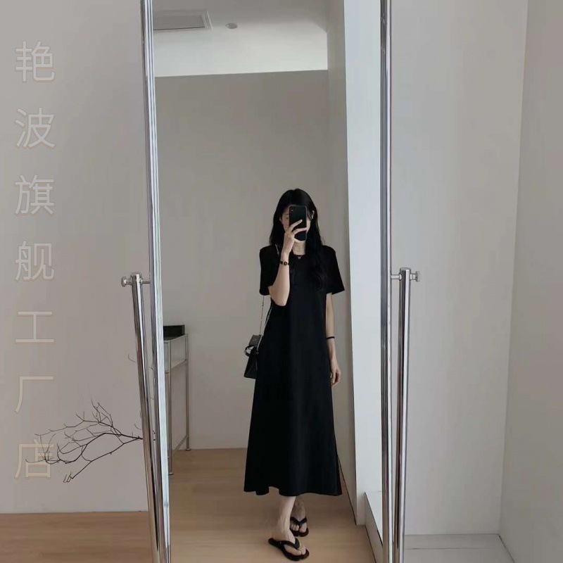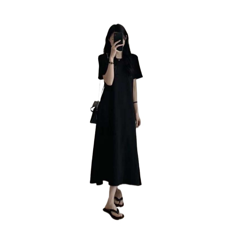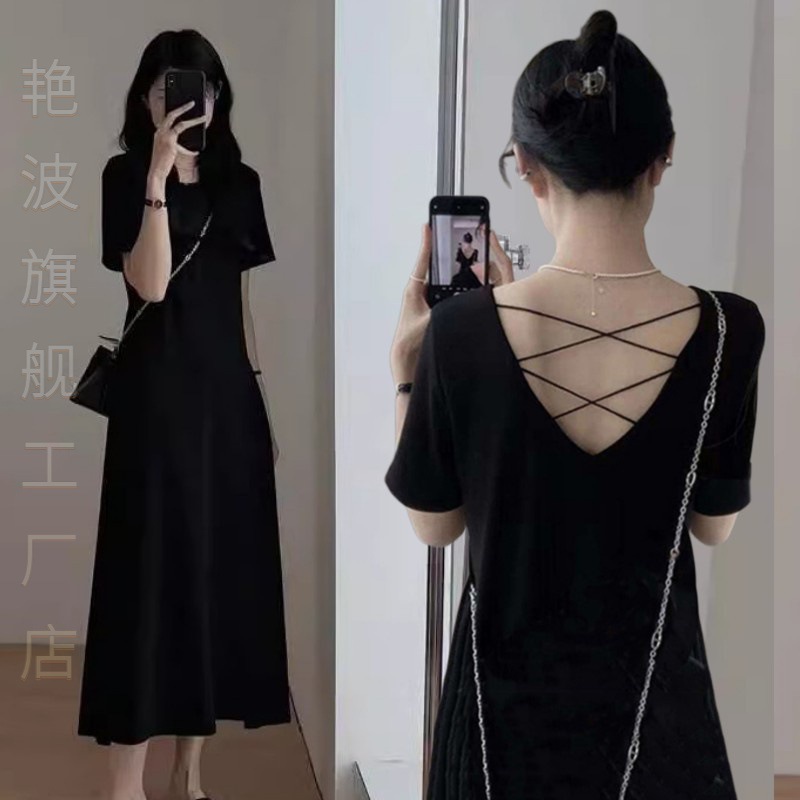 | nameOriginal | Temperament Summer Over-the-Knee Long Dress Women's Loose Slimming Simple High-end A- word Backless Cross Hollow Medium Taste |