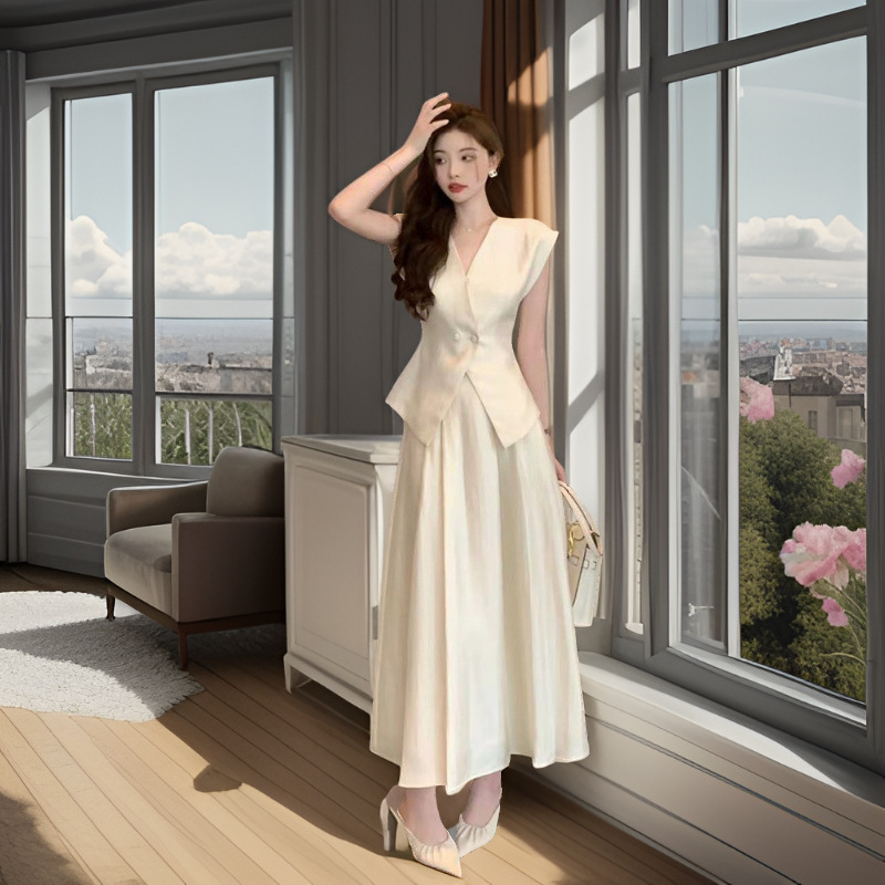 | nameOriginal | Temperament This Year's Popular Sense Fashion suit Women's Summer Dress Temperament V-neck Vest High Waist Half-length Skirt with Taste |
