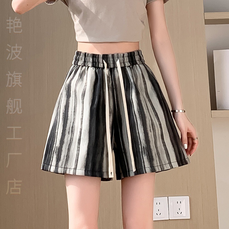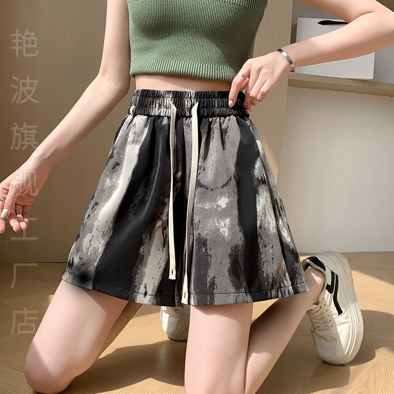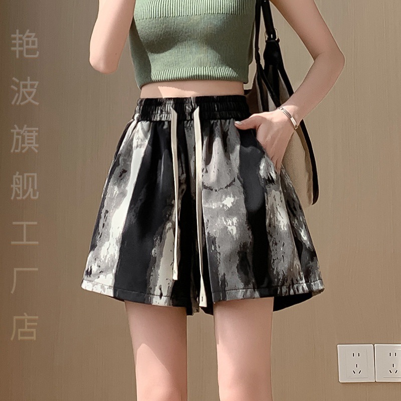 | nameOriginal | Temperament Tie-dye Ink Painting Ice Silk Shorts Women's Summer Thin Drawstring Loose High Waist A- shaped Casual Loose and Taste |
