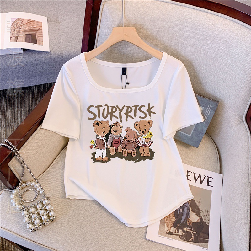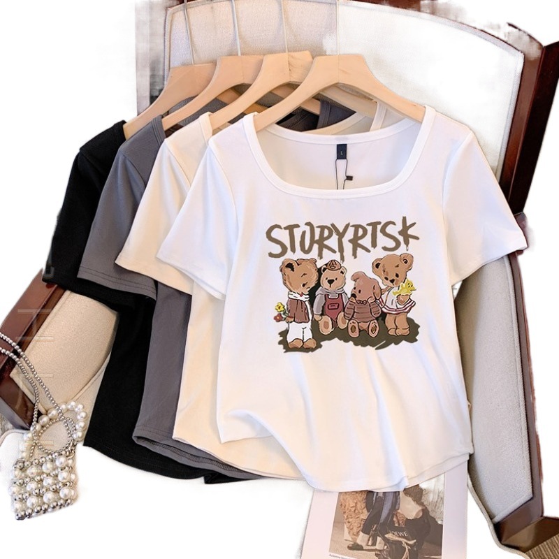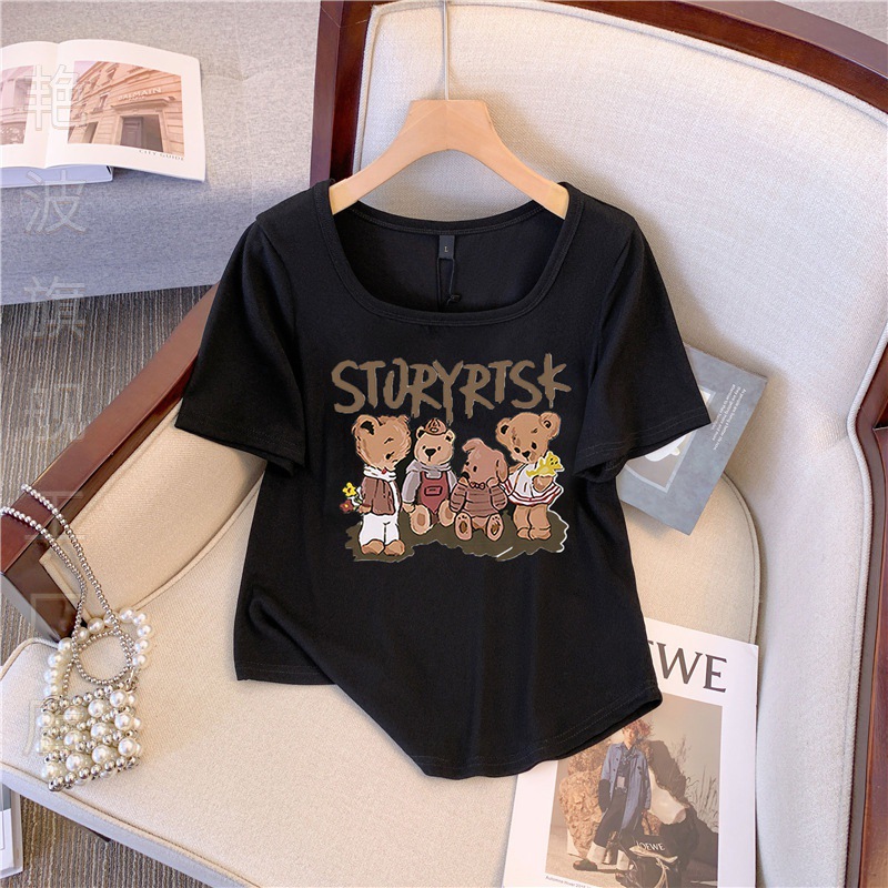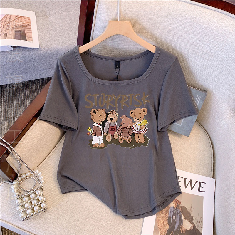 | nameOriginal | Temperament U-collar Letter Cartoon Bear Print T-shirt Women's Summer plus size chubby girl Casual Western Style Age-reducing Show Taste |
