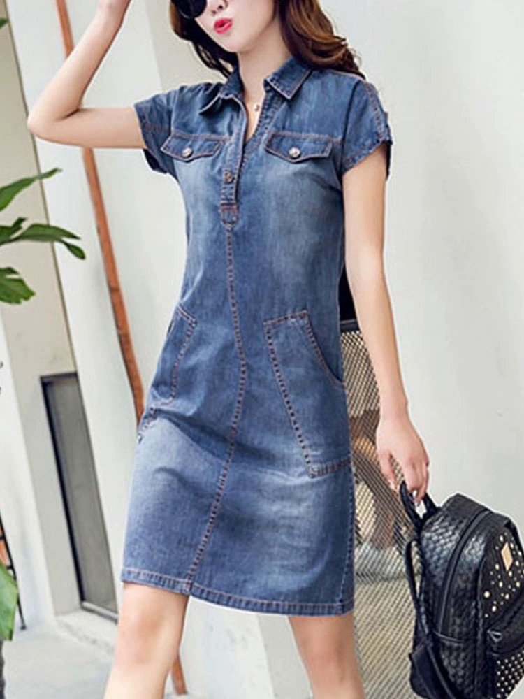 | nameOriginal | Temperament V-neck loose niche denim dress |