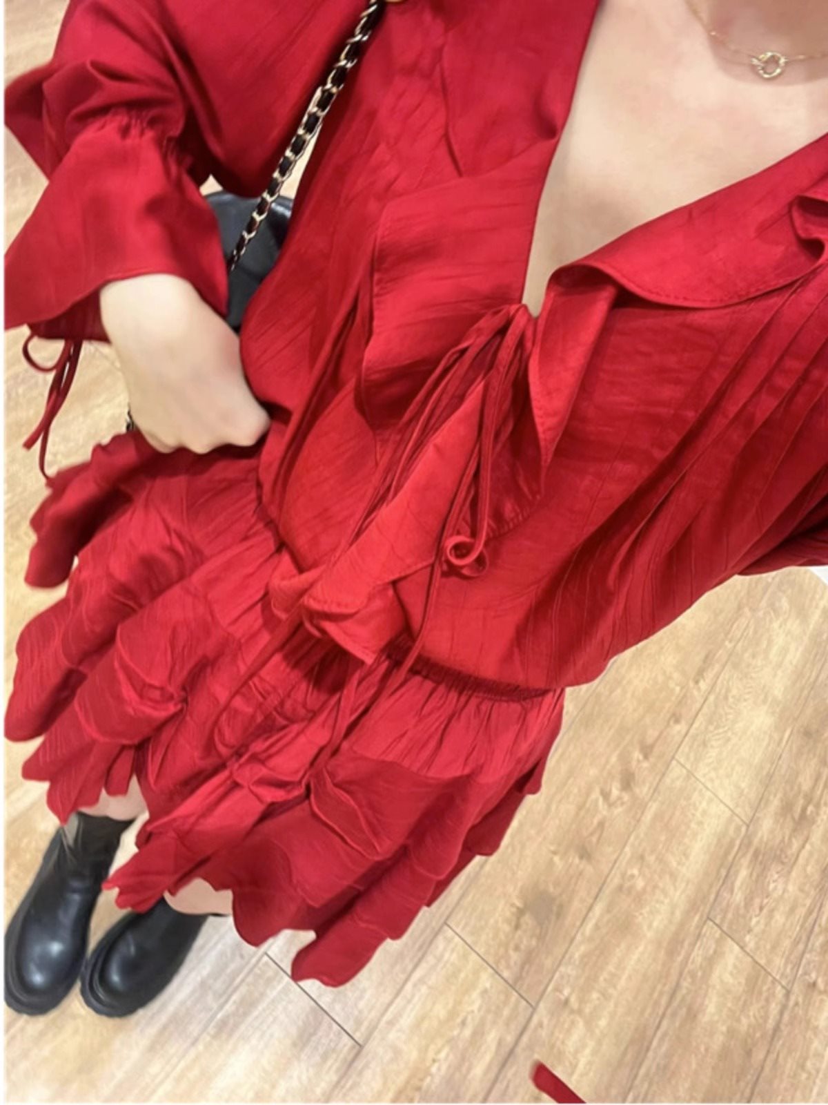 | nameOriginal | Temperament White Shirt Cake Skirt Sunset Love Red Ruffled suit Lace V-Neck Top Lace Two Pieces |