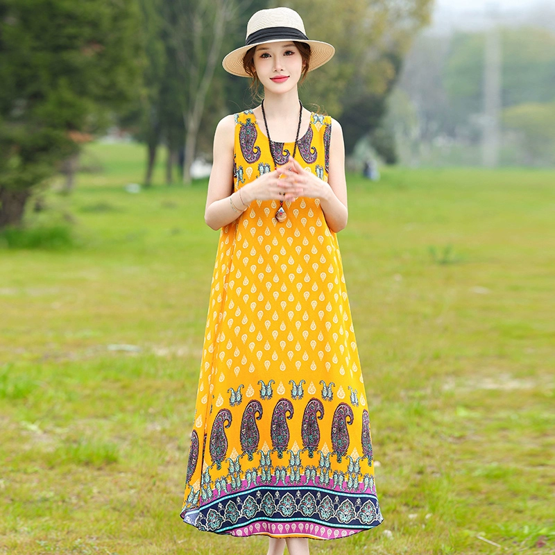 | nameOriginal | Temperament women's new summer loose cotton silk dress with suspenders |