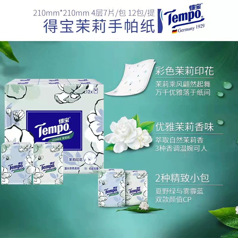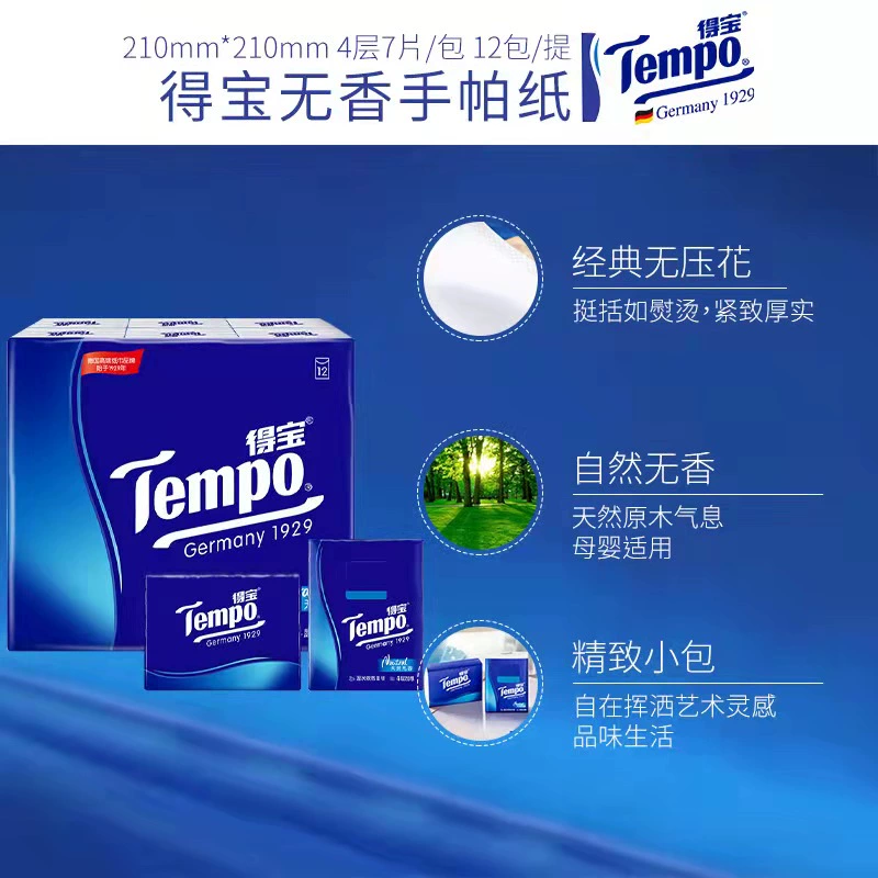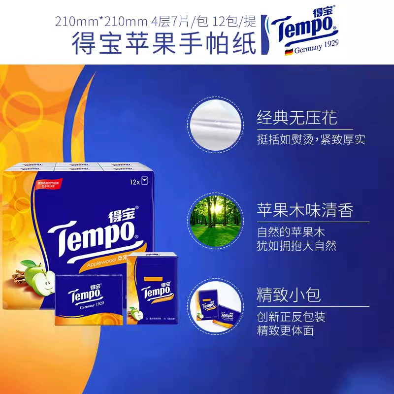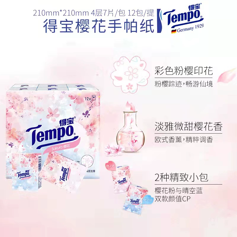 | nameOriginal | Tempo Depot handkerchief paper 12 pack 4-ply Depot small pack paper towel napkin sweet core peach flavor facial tissue toilet paper |