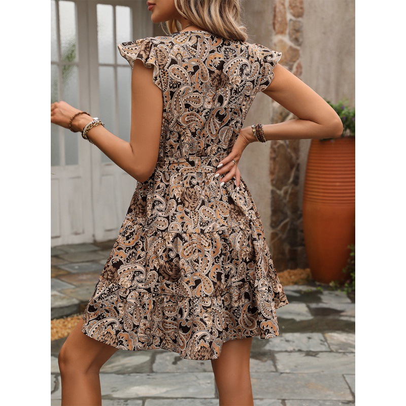 temu Amazon wish independent station European and American women's foreign trade V-collar color printing dress