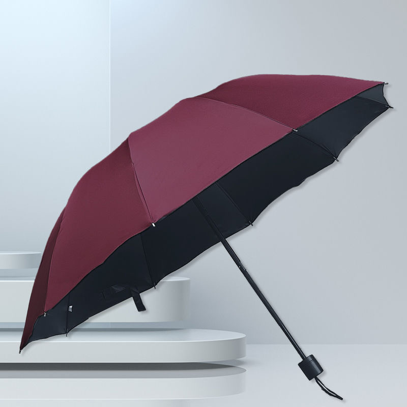 | nameOriginal | Ten-bone black glue solid color simple business style dual-use umbrella manual tri-fold umbrella |